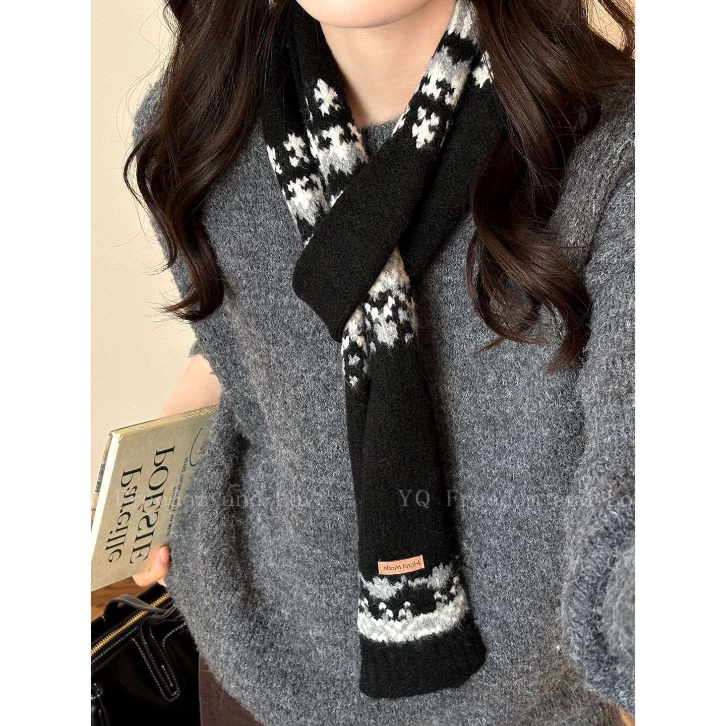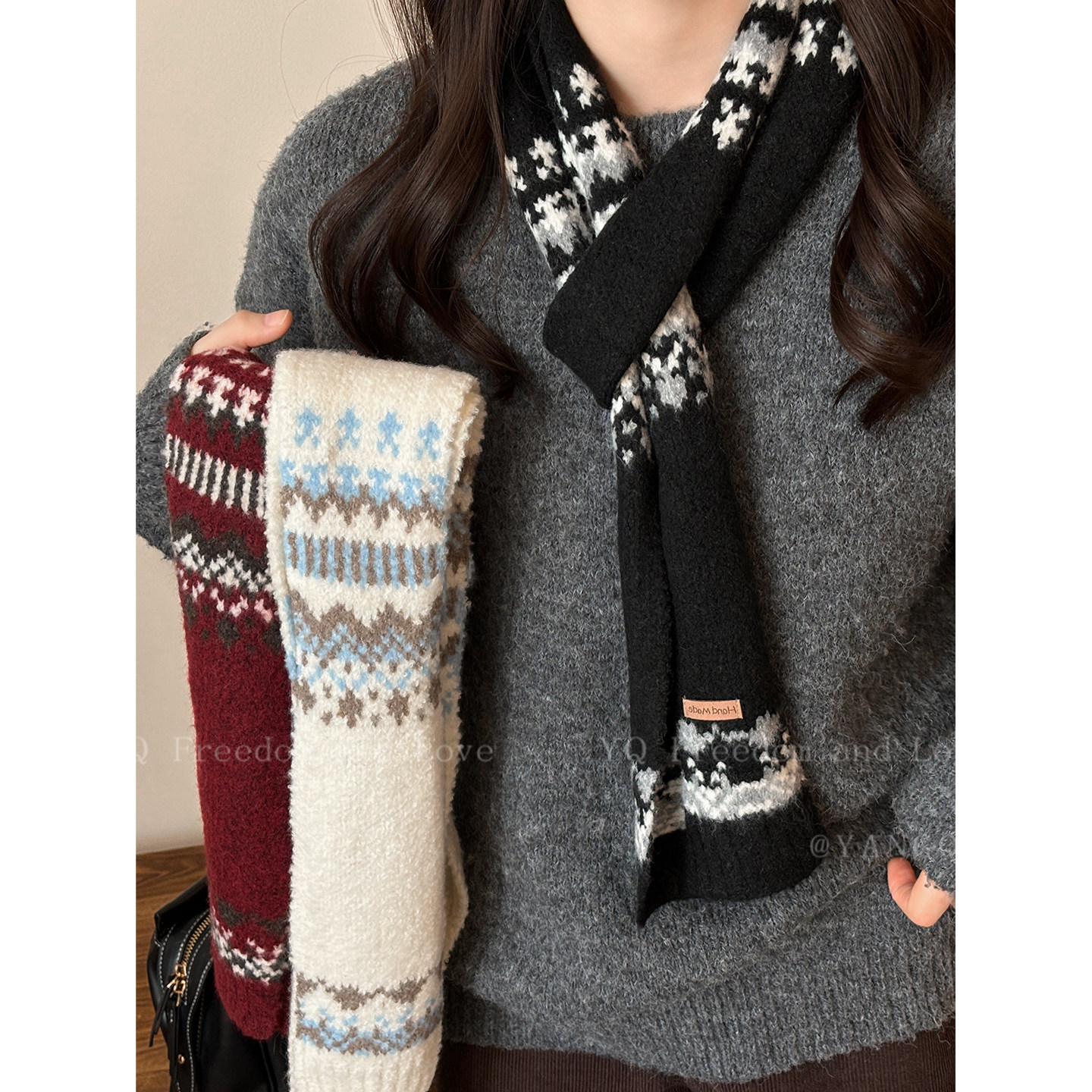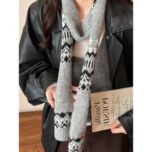 韩系费尔岛提花长条小围巾女款 冬高级感保暖加厚情侣围脖 2025新款