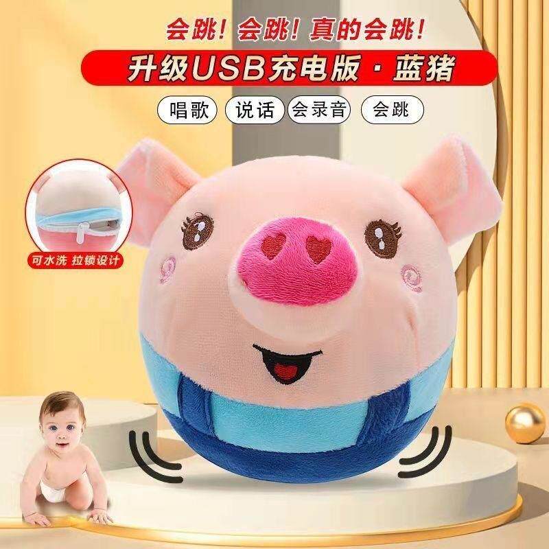 儿童网红跳跳球早教玩具婴幼儿毛绒兔子抖音同款 会说话唱歌跳跳猪