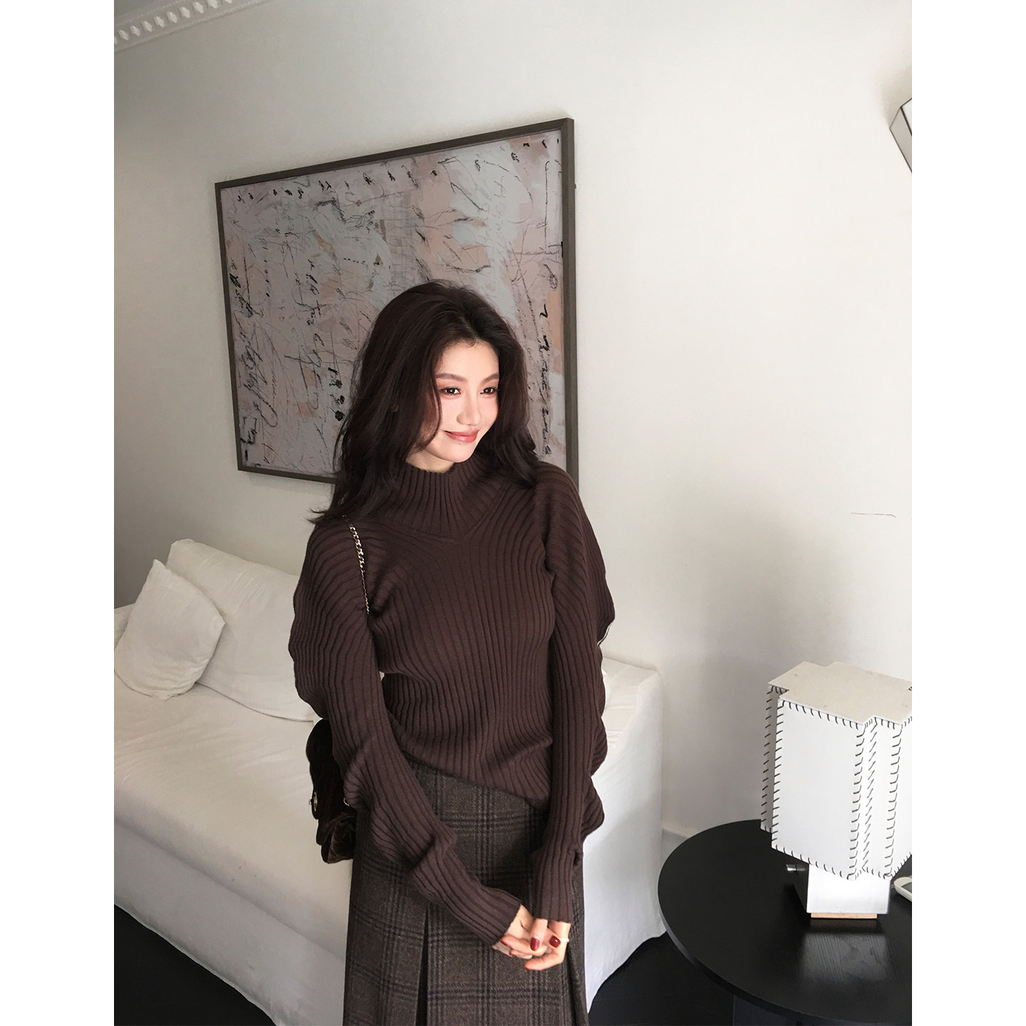 套头衫 Alone 高领钩花修身 简约纯色绵羊毛针织衫 D616 Savor龙喜儿