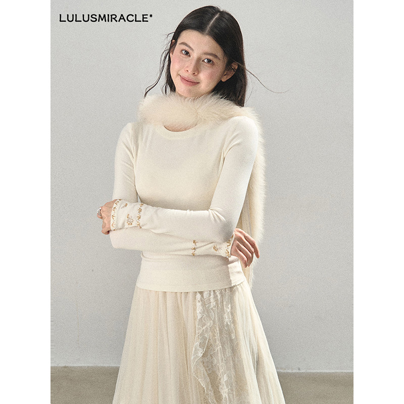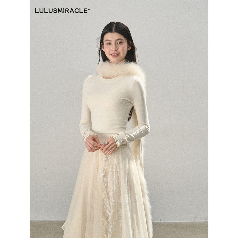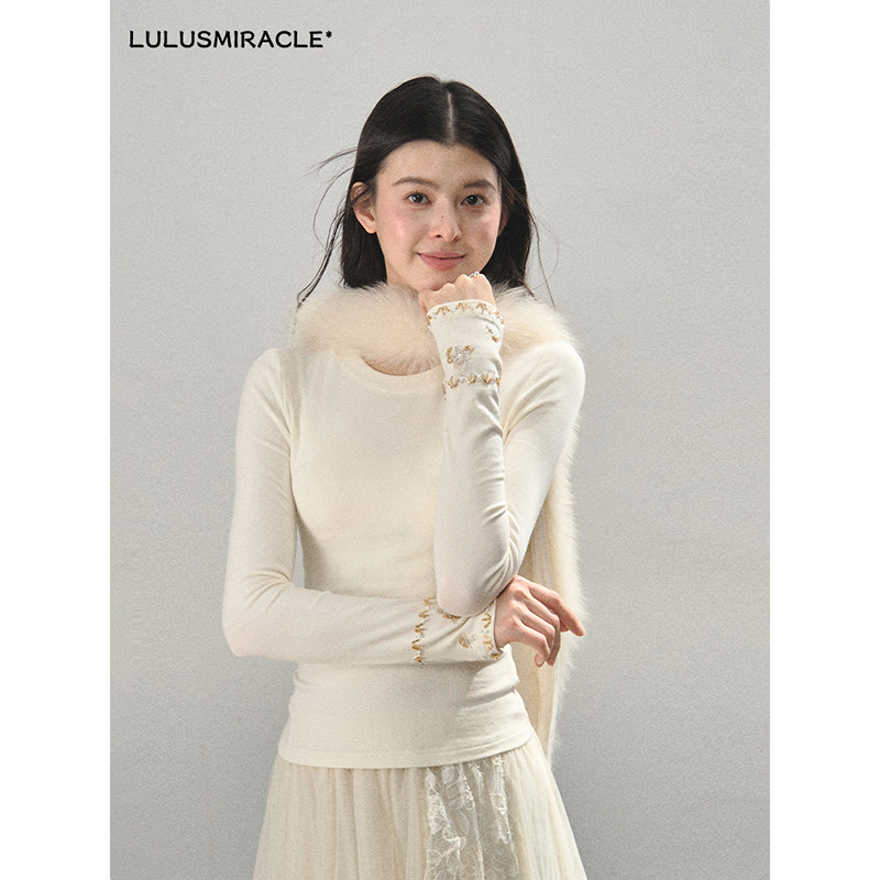 白色打底衫 圆领长袖 女内搭保暖紧身上衣 空白格 Lulusmiracle