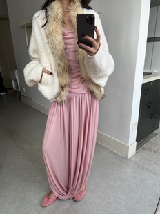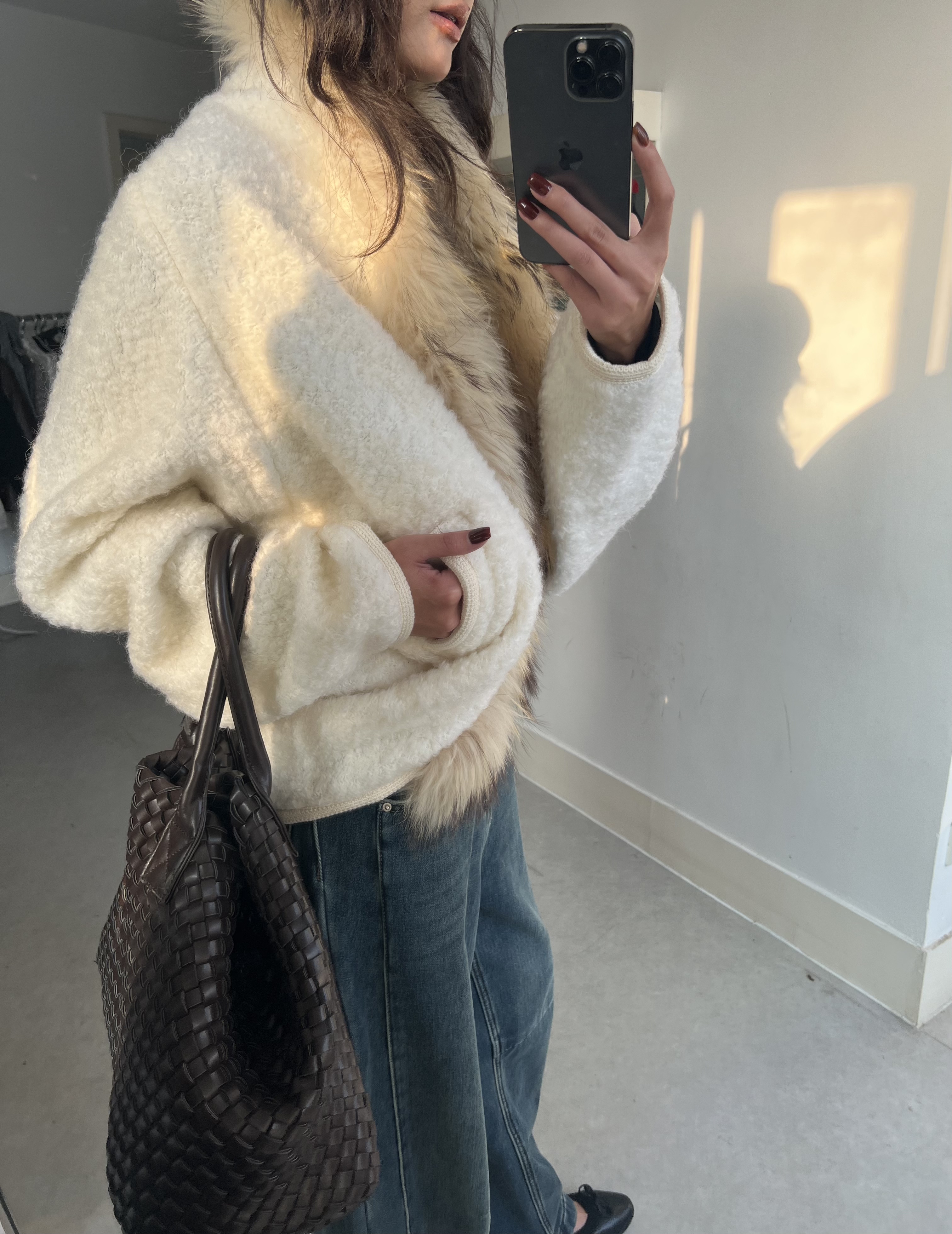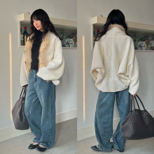 毛呢外套宽松慵懒气质开衫 现 蝙蝠袖 WEEEECHAN 外套 真毛领