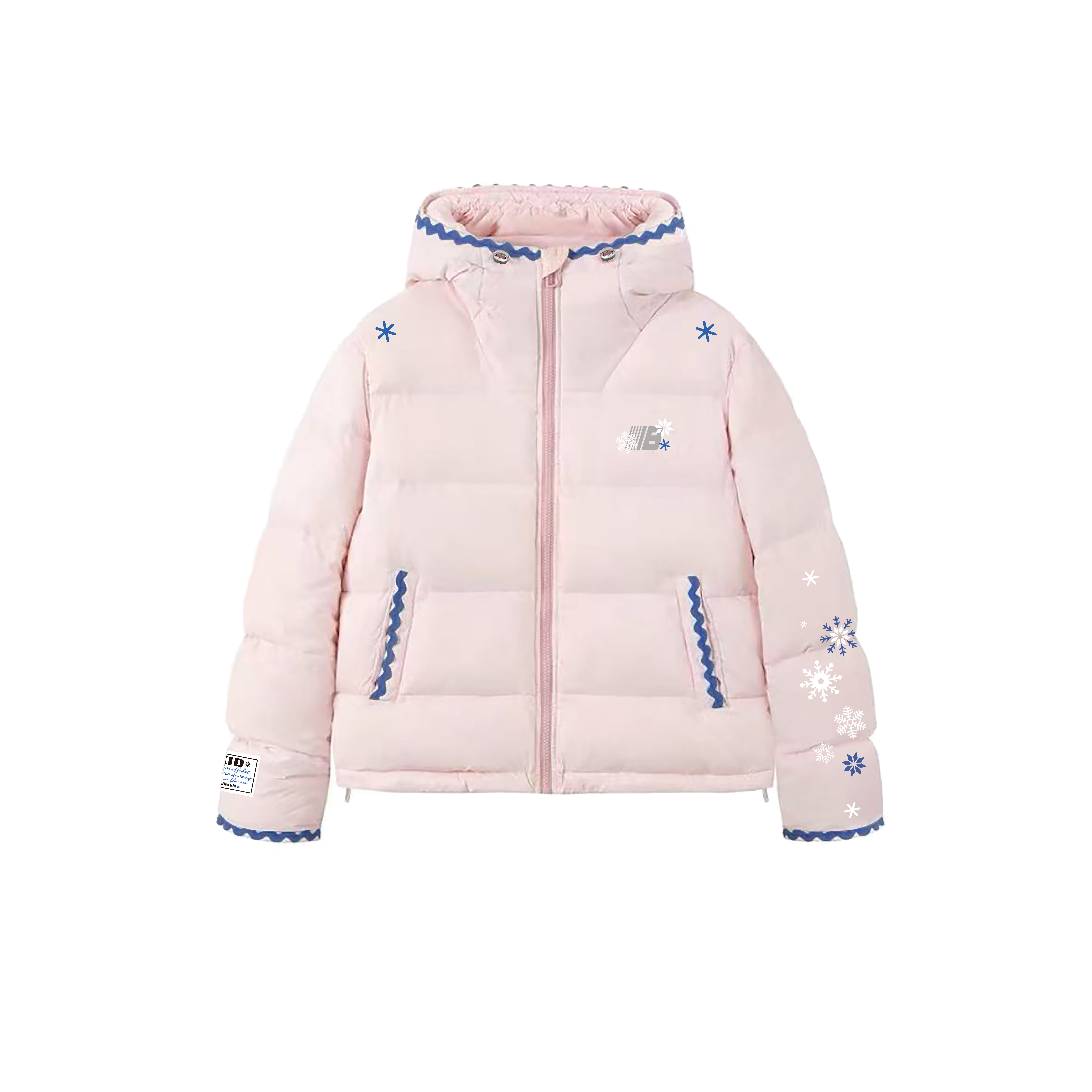 文文不乖原创美式 加厚保暖 雪花刺绣贝壳棉服多巴胺连帽男女冬季