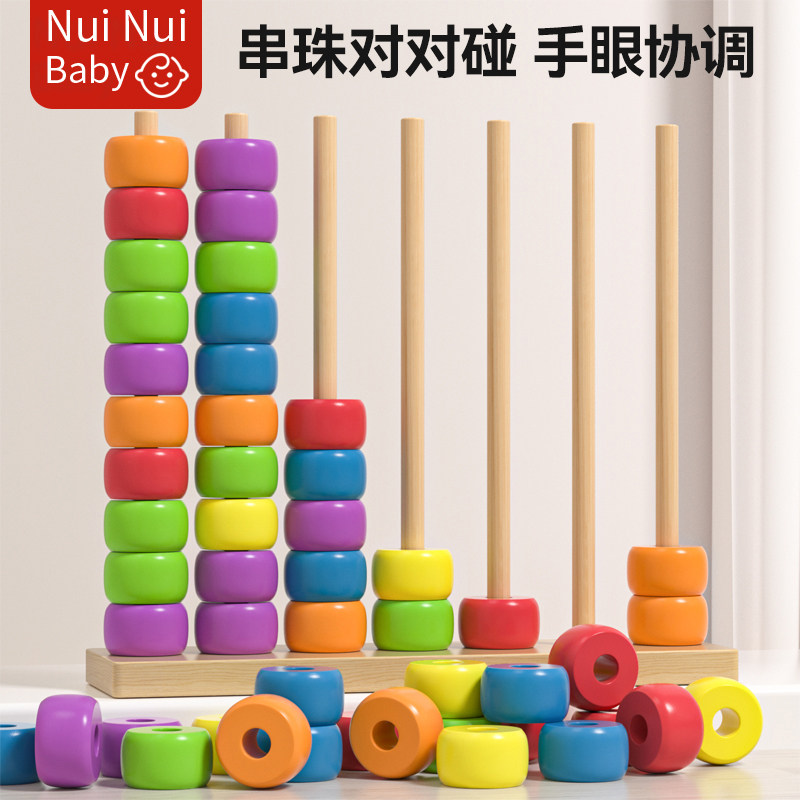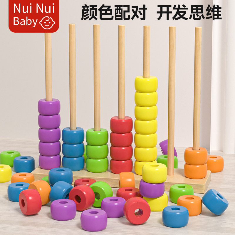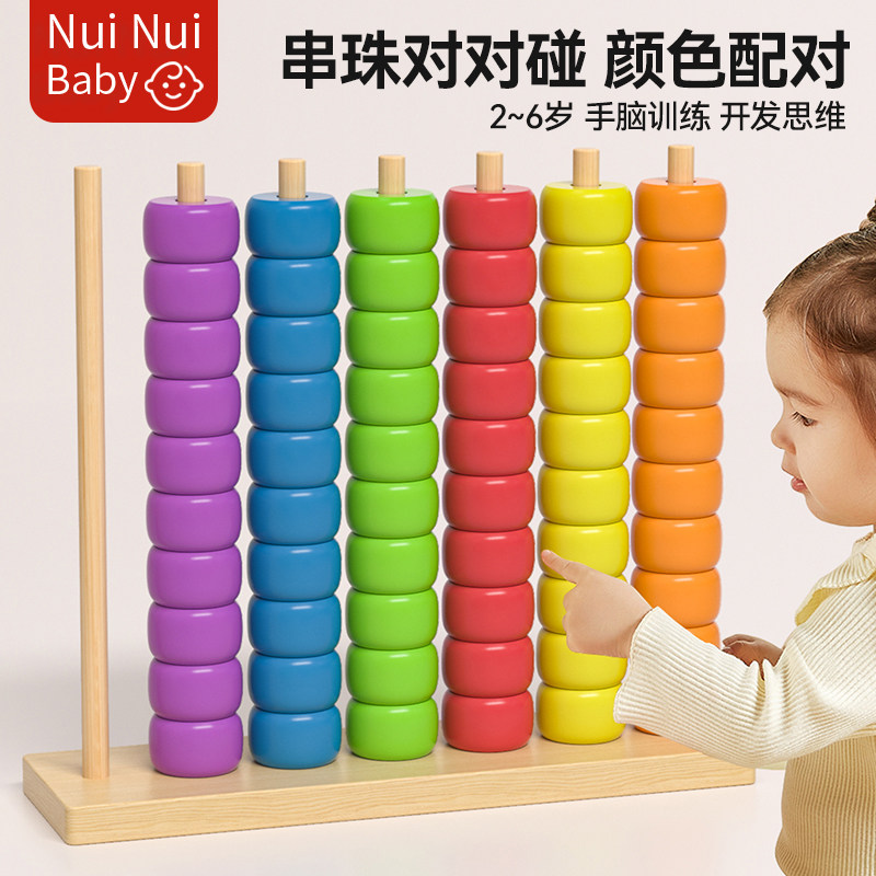 儿童实木串珠积木宝宝蒙氏早教益智玩具穿珠子颜色配对幼儿园教具