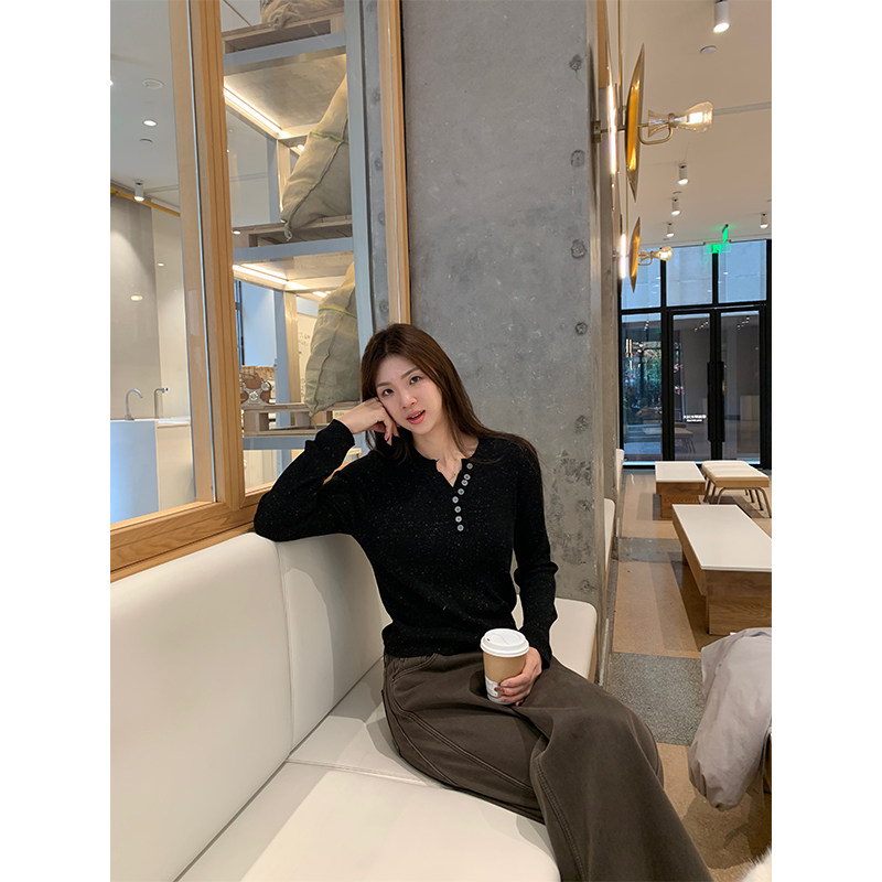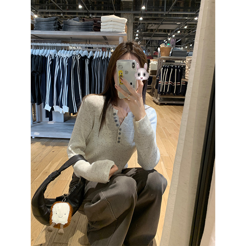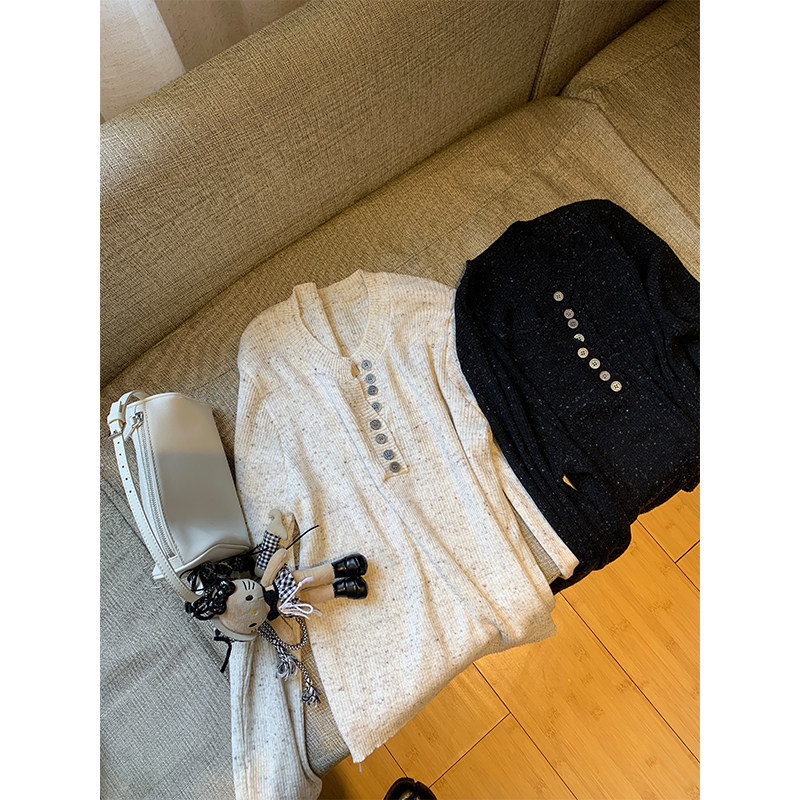 毛衣 女韩系坑条显瘦内搭打底衫 Cactishop燕麦可可 杂色亨利针织衫