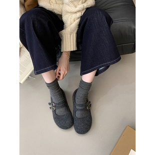 女冬单鞋 内增高毛呢加绒玛丽珍鞋 灰色毛毛鞋 勃肯鞋 浅口 2025新款