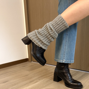 不过膝长筒靴女小个子女鞋 复古黑色马丁厚底高筒骑士靴子显瘦长靴