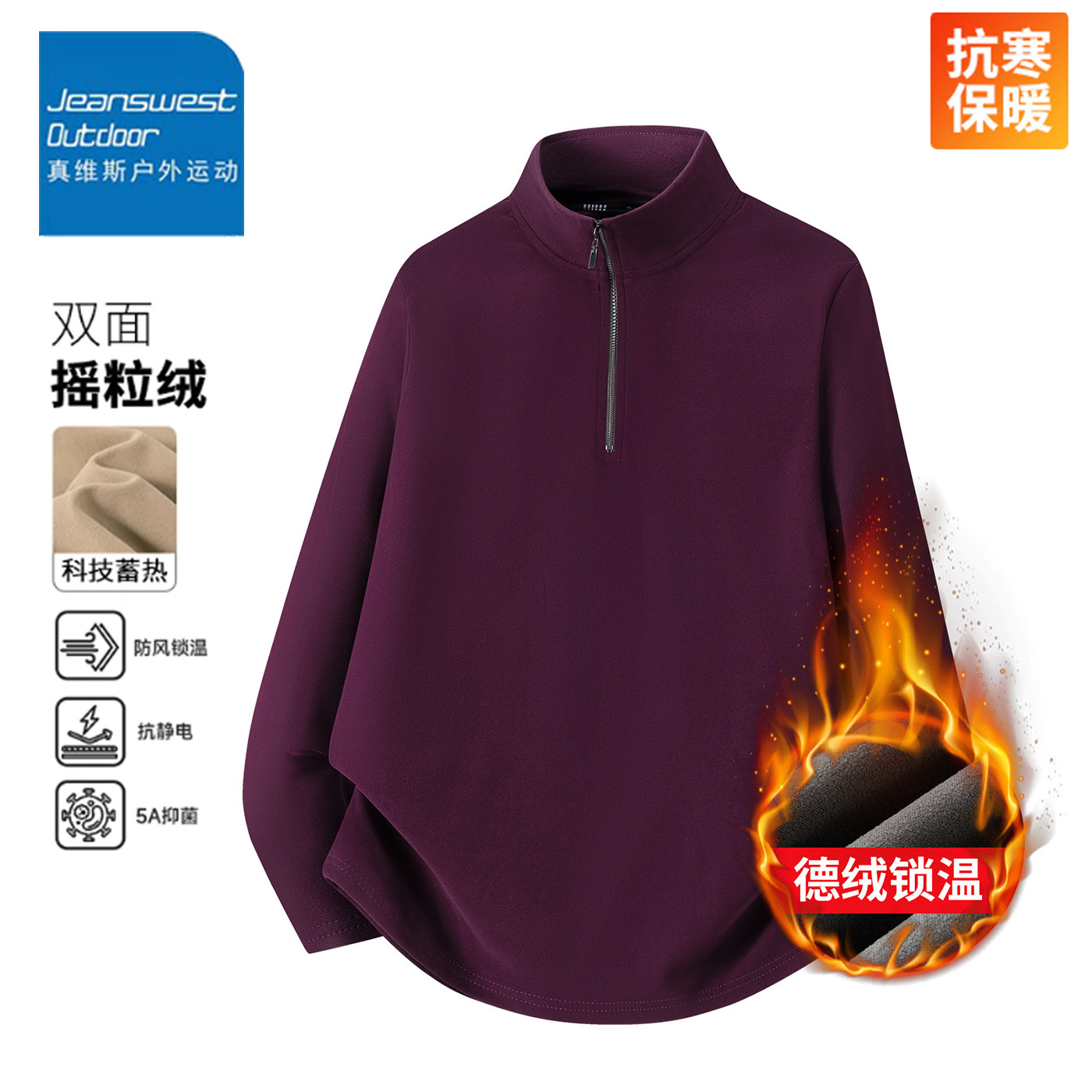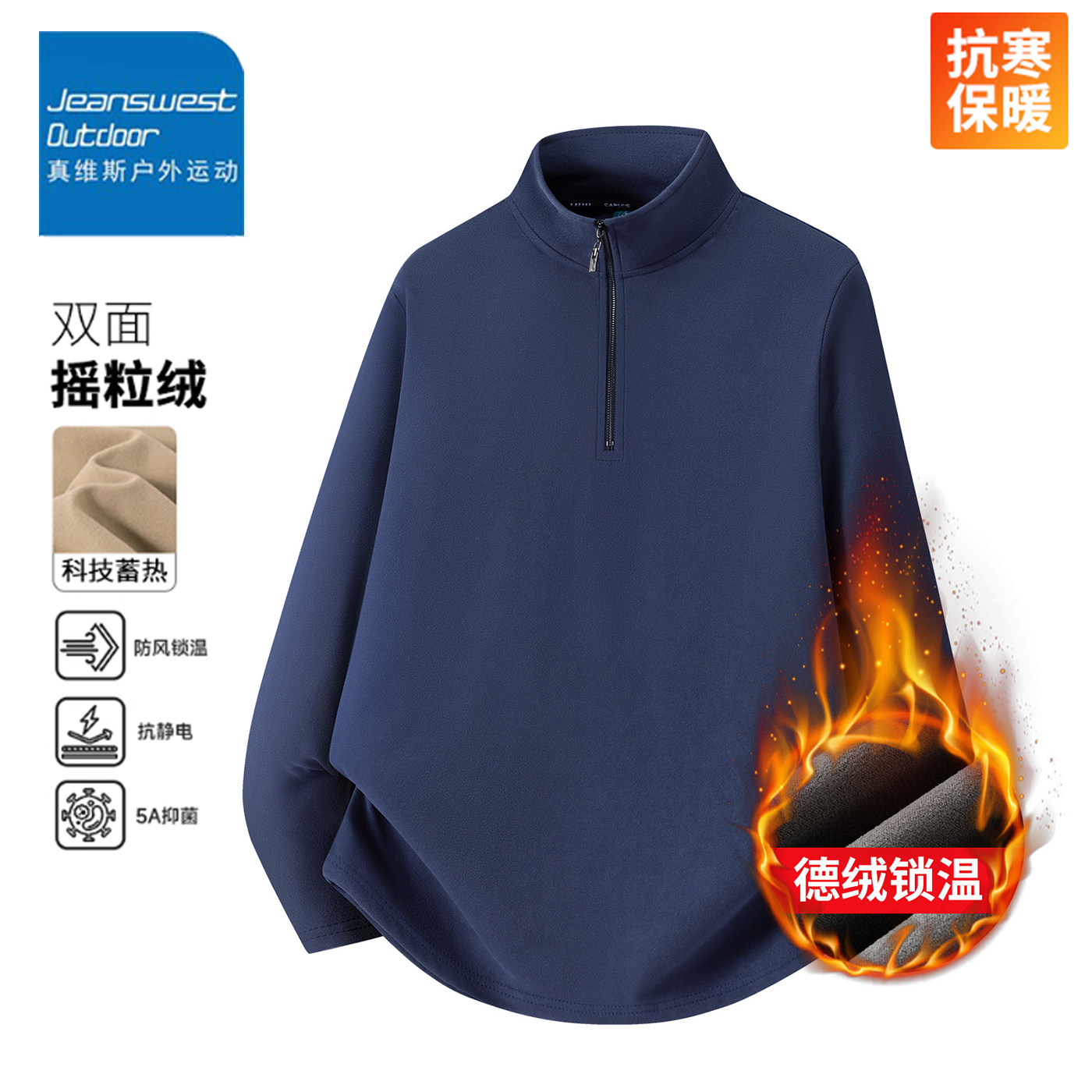 半拉链长袖 加绒保暖衣男女款 男冬季 真维斯户外运动摇粒绒打底衫