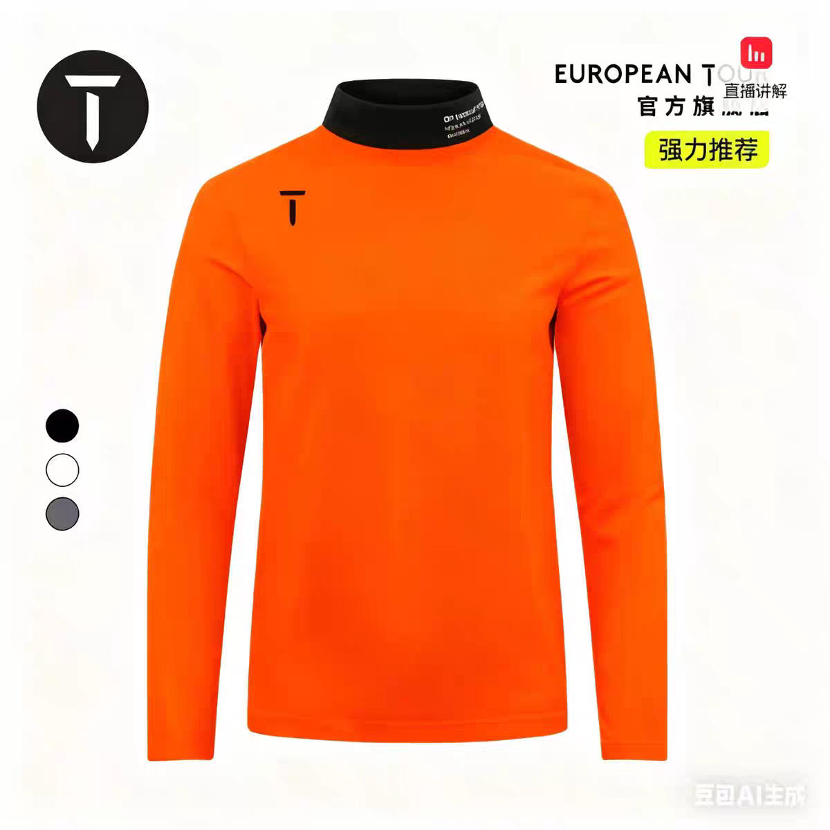 秋冬加绒高弹舒适半高领打底衫 T恤新品 长袖 欧巡赛高尔夫男装
