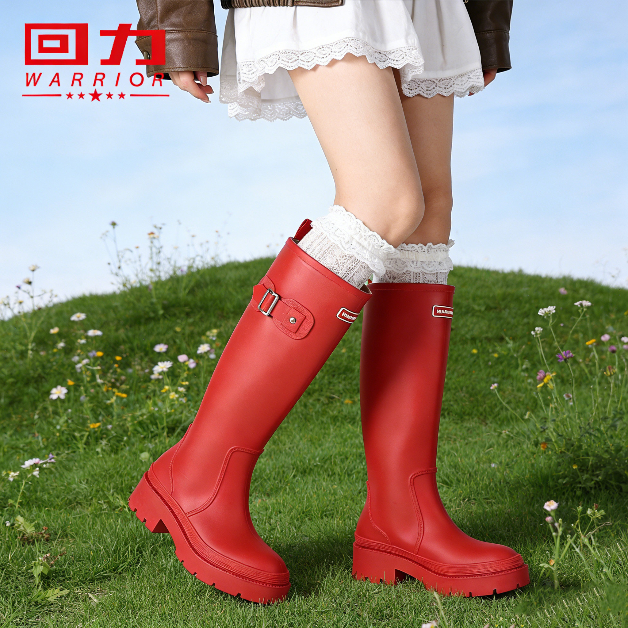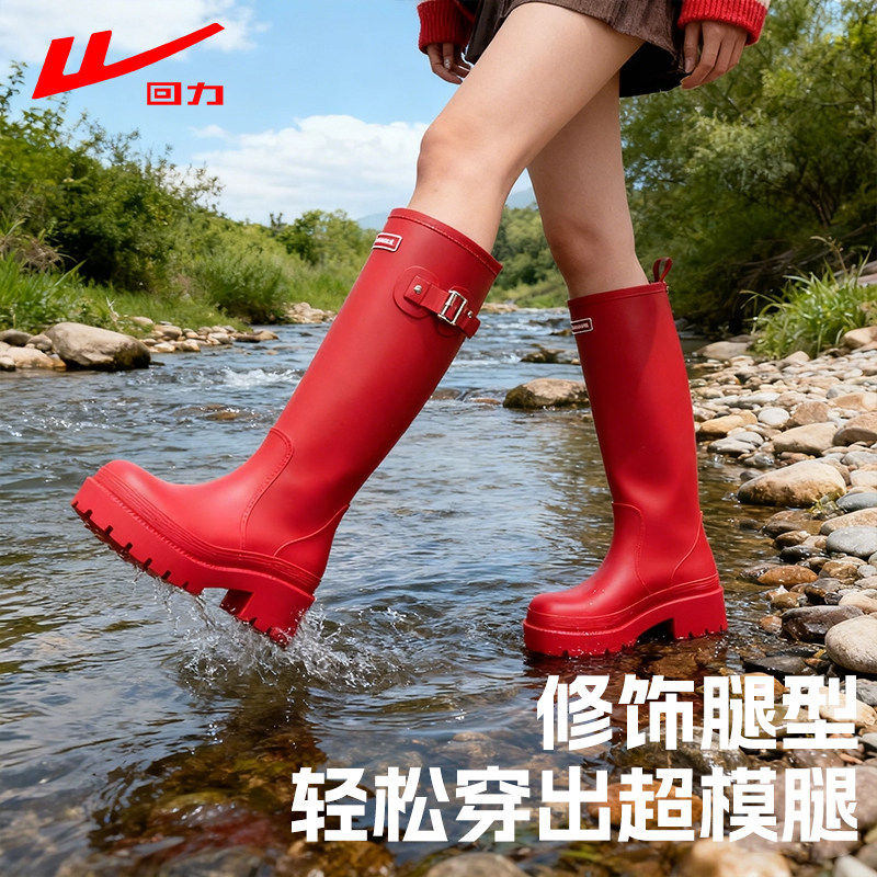 长靴防水防滑户外雨林徒步雨靴胶鞋 惠灵顿时尚 女 女款 回力高筒雨鞋