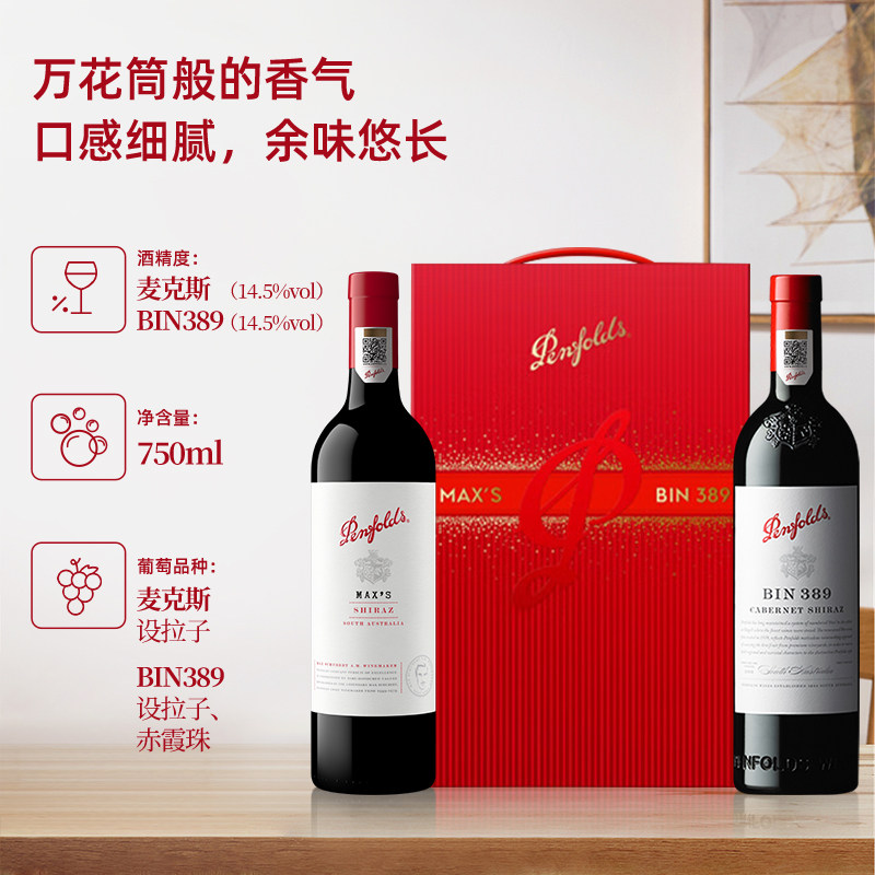 S红酒澳洲官方进口干红葡萄酒礼盒 奔富BIN389麦克斯MAX 自营