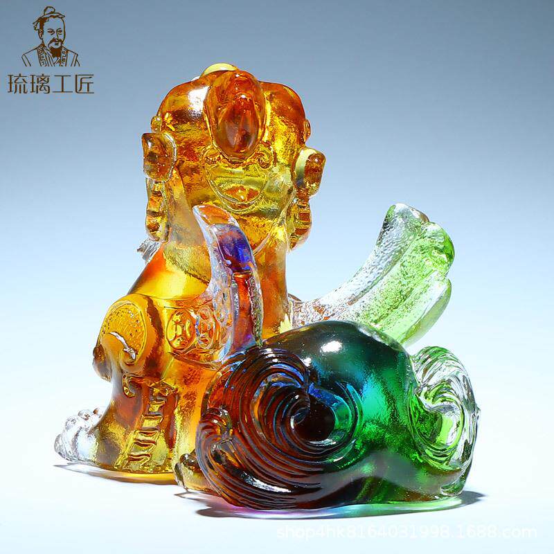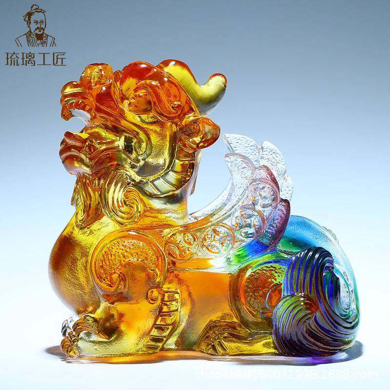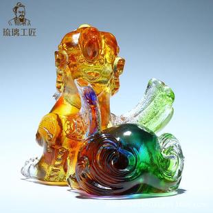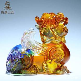 高档古法琉璃工艺品新款 饰一对 汽车貔貅招财摆件车载车内中控台装
