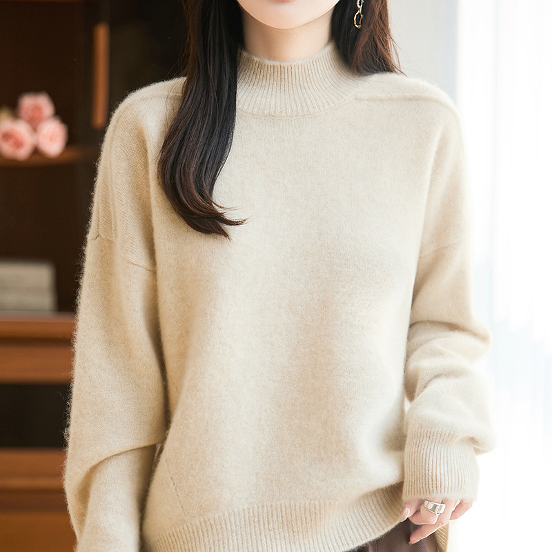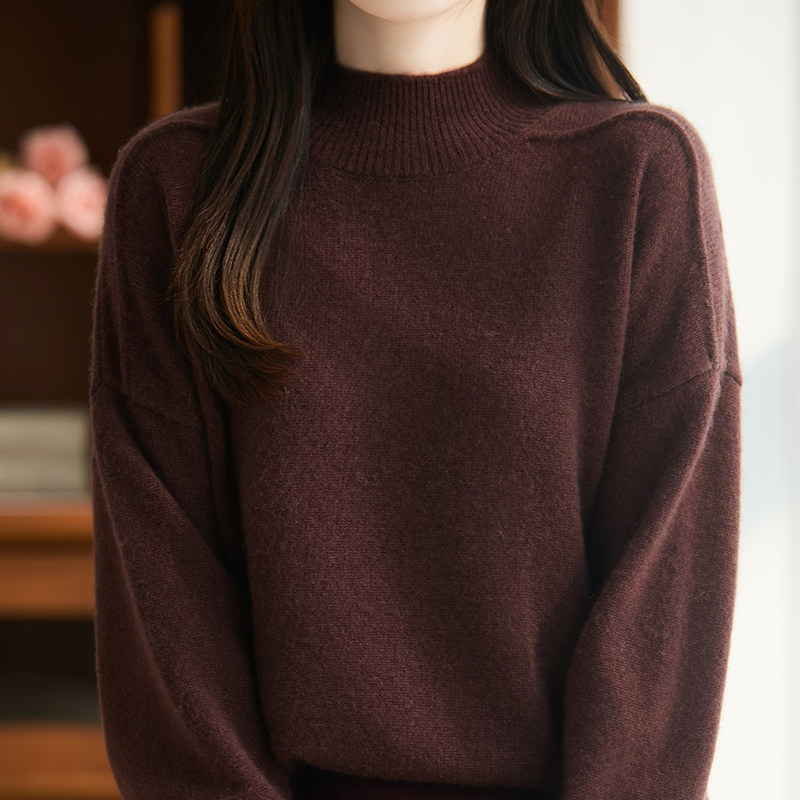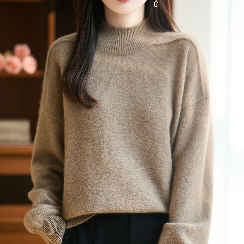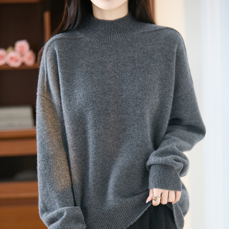 BM25079女士100%羊毛半高领毛衣宽松版 型藏肉显瘦秋冬氛围感穿搭