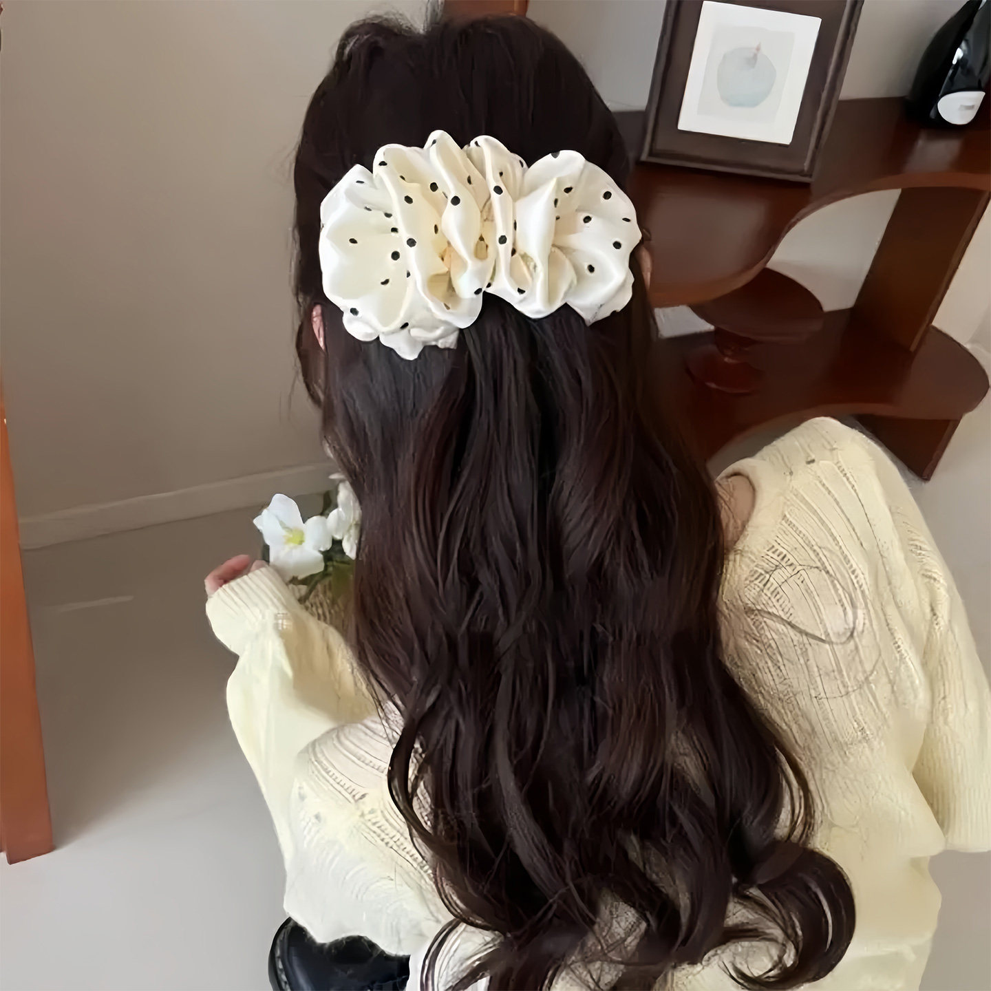 韩系波点泡泡香蕉夹竖夹2025新款 半扎发夹后脑勺马尾一字扭扭夹女