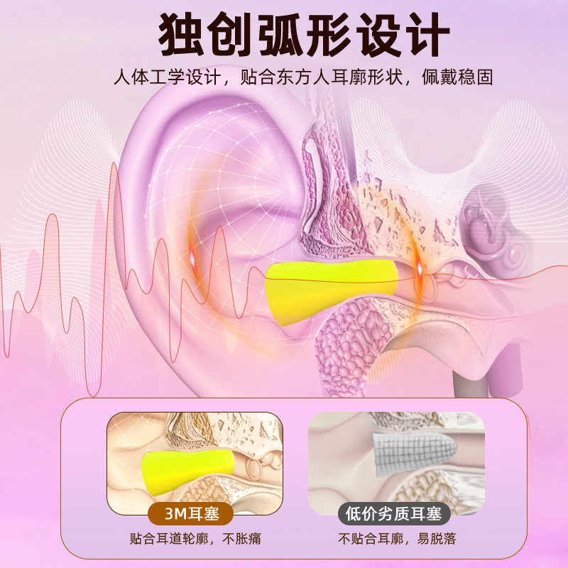 3M隔音耳塞工厂降噪宿舍学习睡眠睡觉休息专用防干扰防吵静音神器