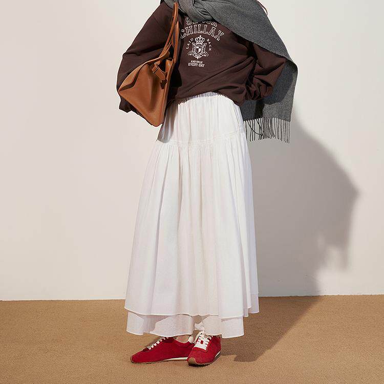 大摆伞裙2025秋冬新品 OCHIRLY欧时力 精梳棉高腰a字半身裙中长款