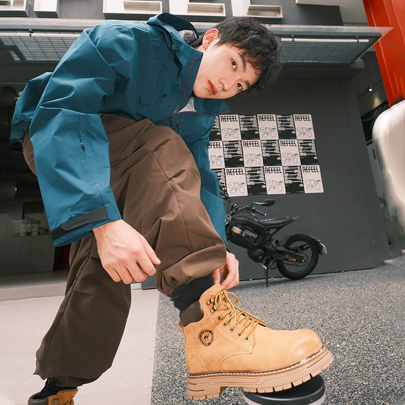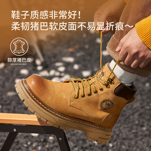 靴 加绒大黄靴女复古户外工装 王俊凯同款 骆驼马丁靴男秋冬新款