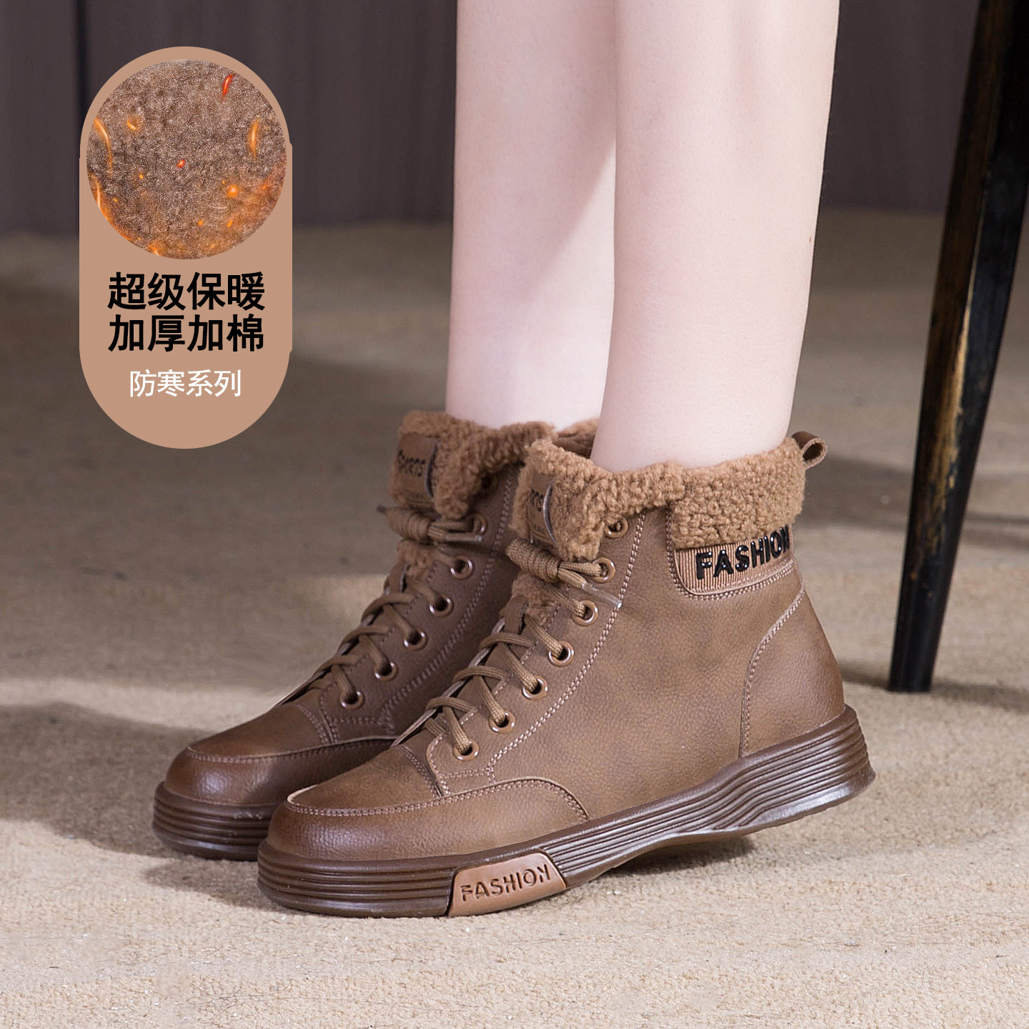 雪地靴加厚棉鞋 骆驼女鞋 加绒保暖时尚 新款 休闲短靴女 2025冬季
