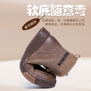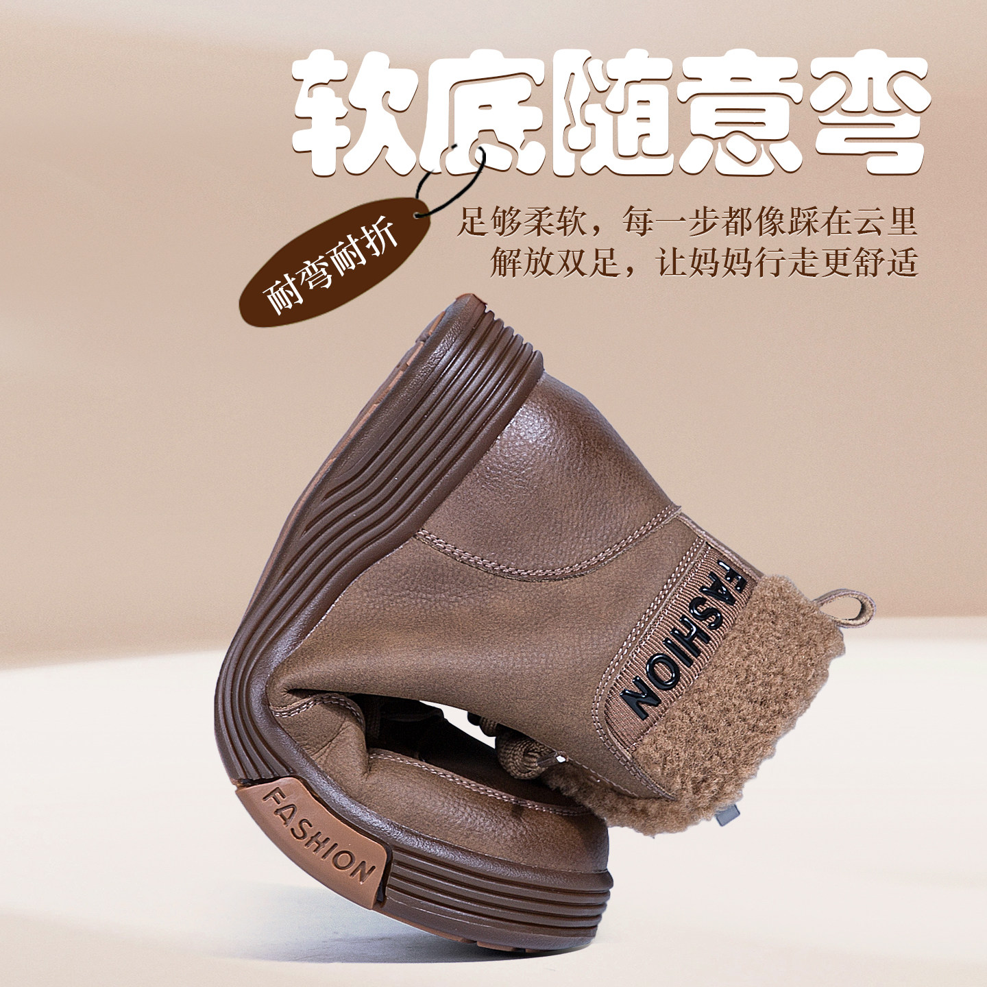 加绒防滑一脚蹬保暖妈妈棉靴加厚雪地靴 女冬季 2024新款 老北京棉鞋