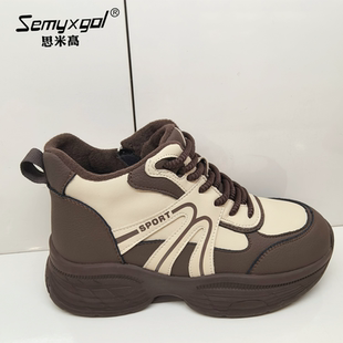 女加绒厚底增高情侣休闲运动鞋 骆驼银月老爹鞋 子 迪丽热巴同款