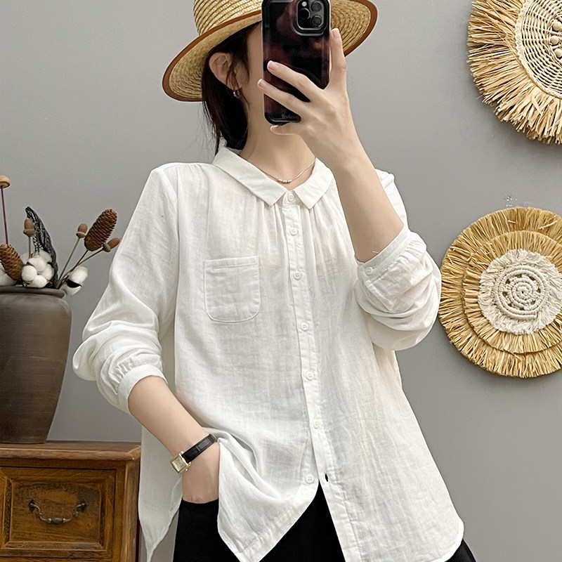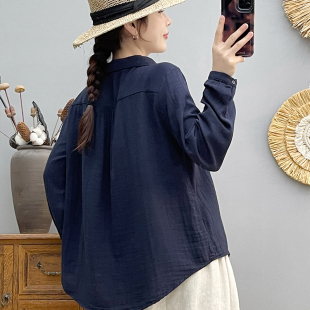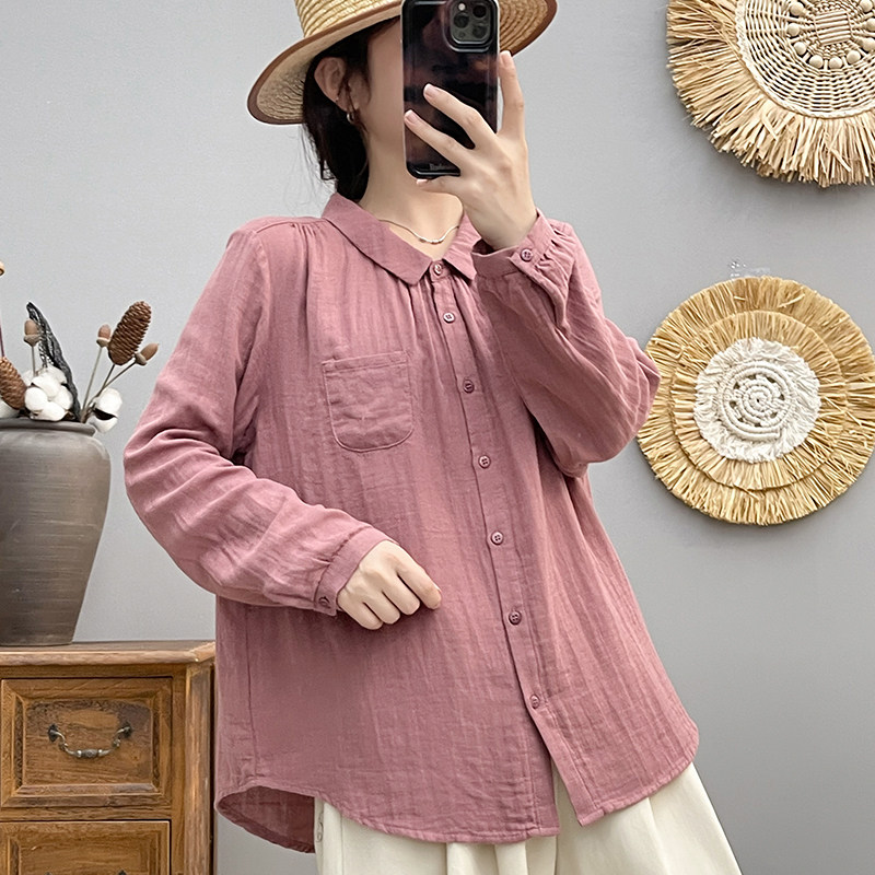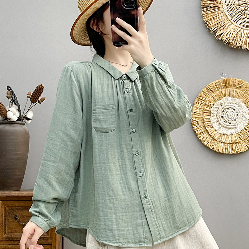 女装 双层棉纱2026减龄纯色长袖 气质开衫 春秋装 上衣百搭女8571 衬衫