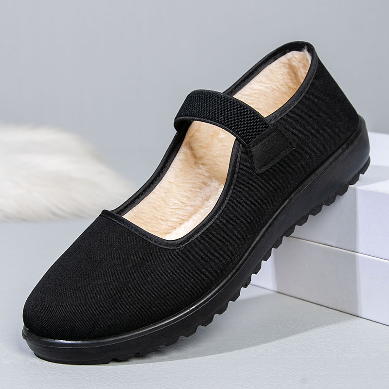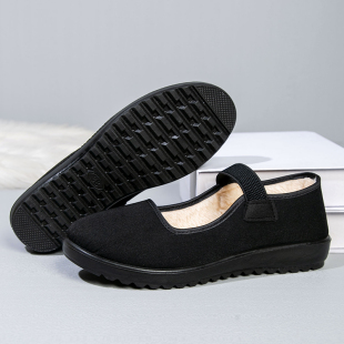 防滑透气单鞋 老北京布鞋 工作鞋 平底松紧带一字带妈妈鞋 女黑色布鞋