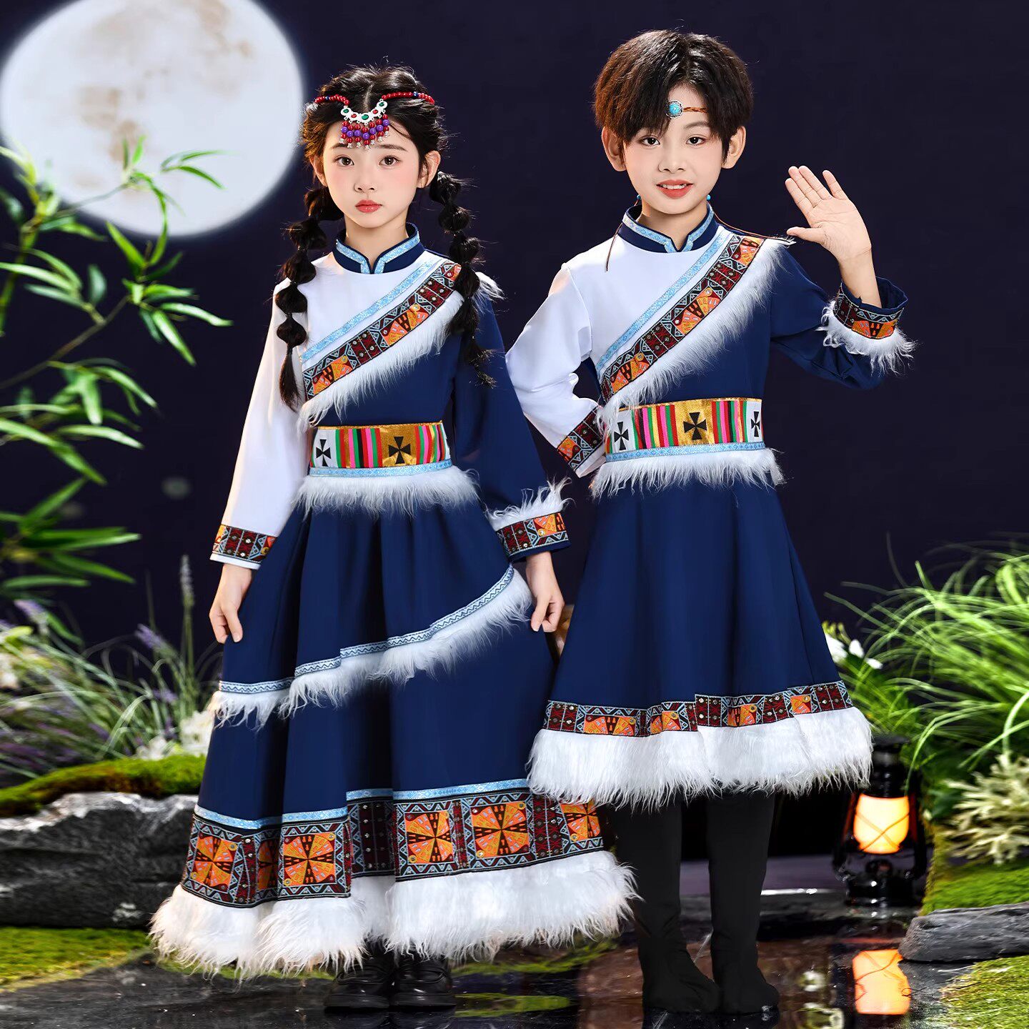 旦小学生表演新款 元 演出服 儿童男女56少数民族舞蹈服套装 藏族服装