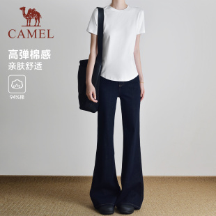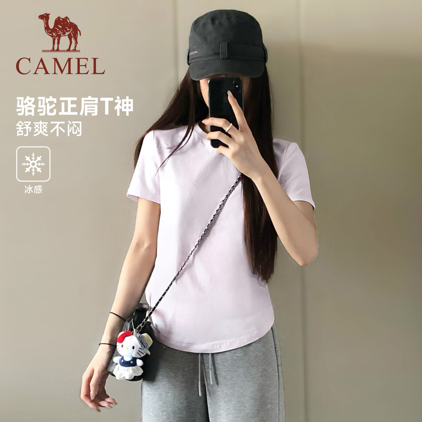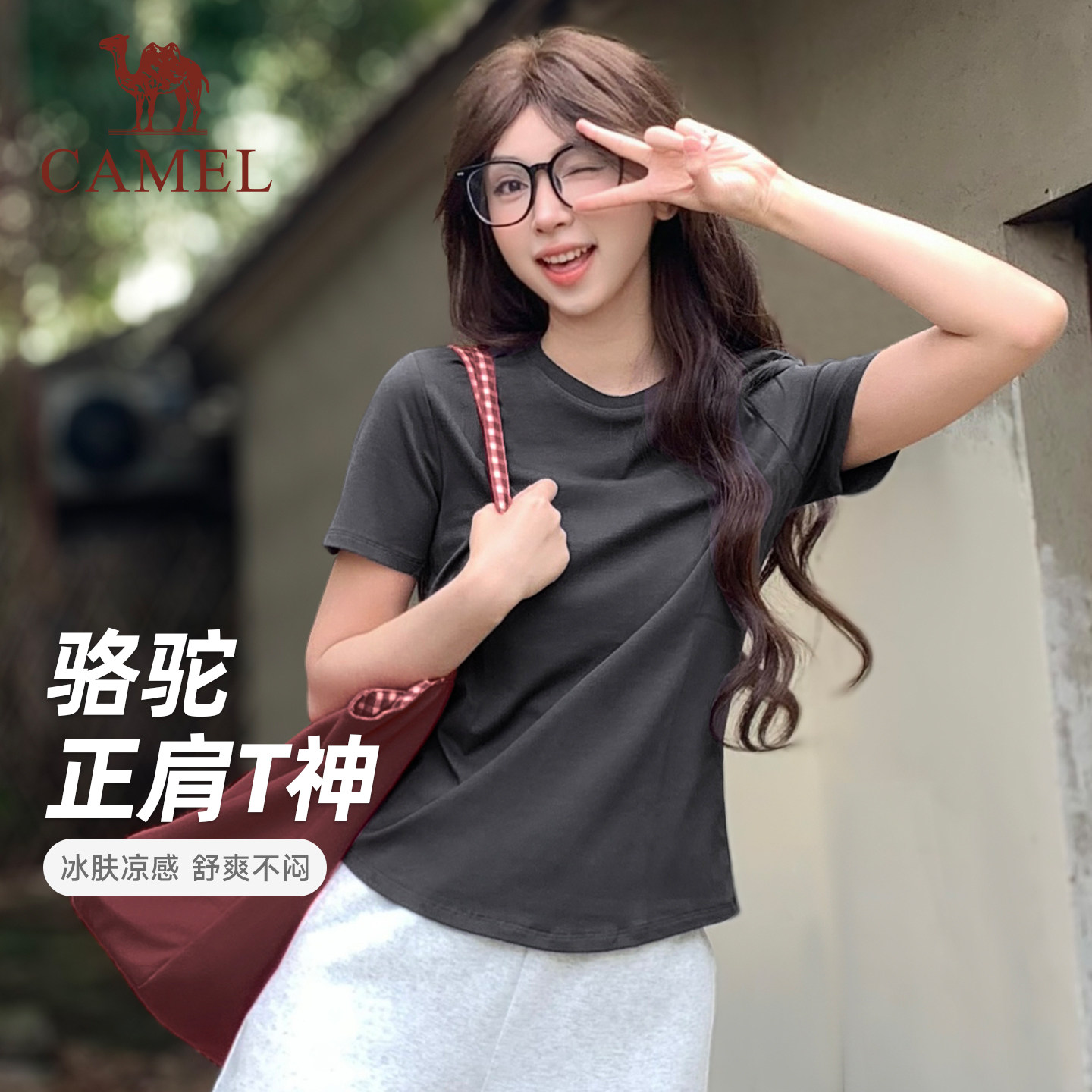 新冰感打底棉纯色短袖 夏季 上衣 骆驼正肩T神运动T恤女短款 热巴同款