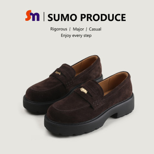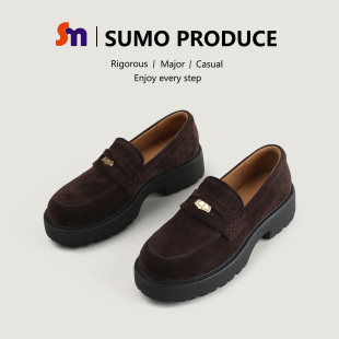 小皮鞋 金币时尚 百搭圆头23367 真皮厚底单鞋 素陌复古港风乐福鞋