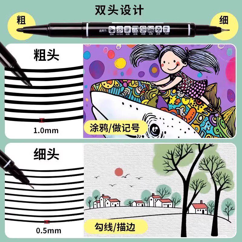 油性记号笔防水不掉色速干勾线笔画面水性笔小学生初高中美术生笔