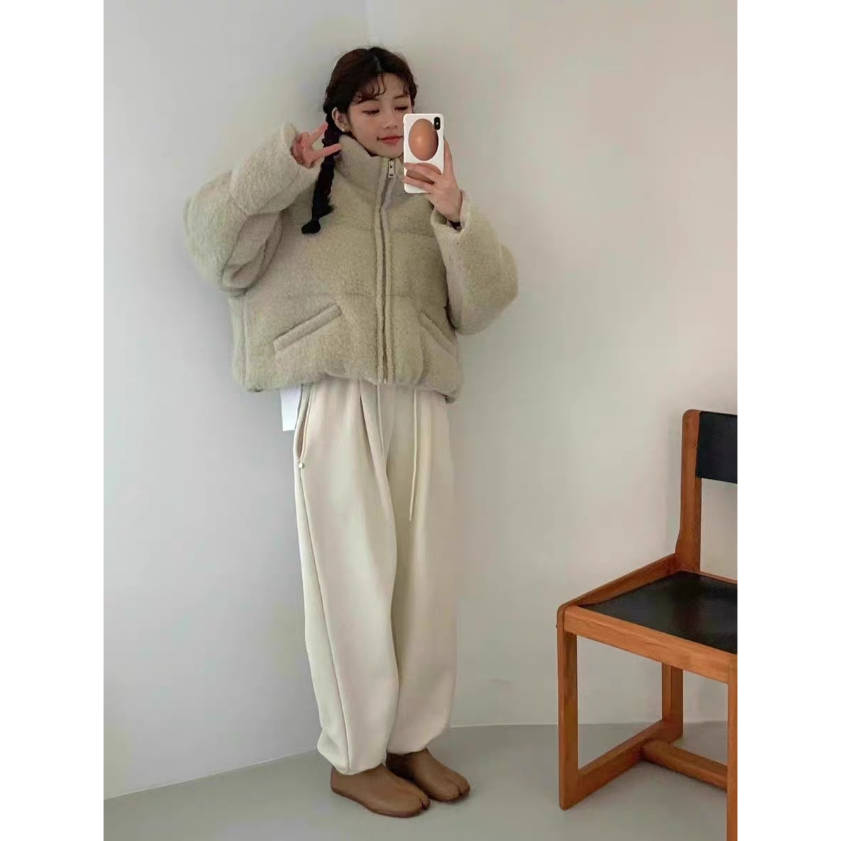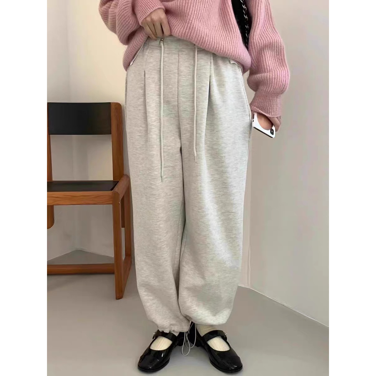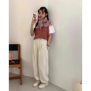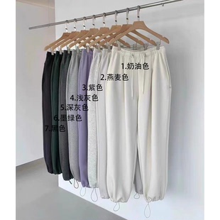 韩国egg鸡蛋家宽松休闲显瘦纯色松紧腰束脚裤 秒发 加绒休闲卫裤
