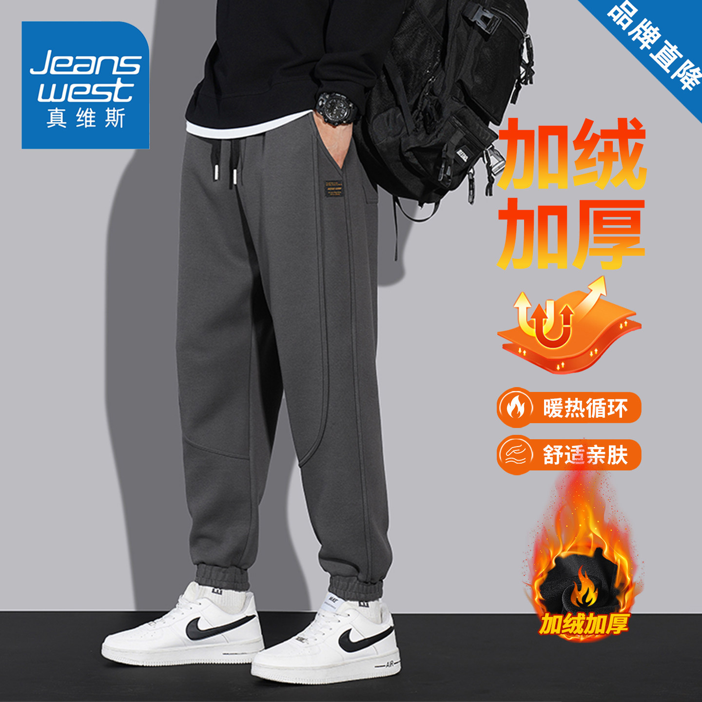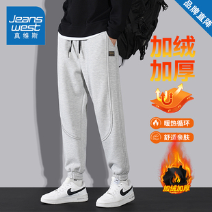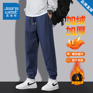 休闲裤 加绒加厚保暖长裤 男款 宽松百搭运动卫裤 子 秋冬季 真维斯美式