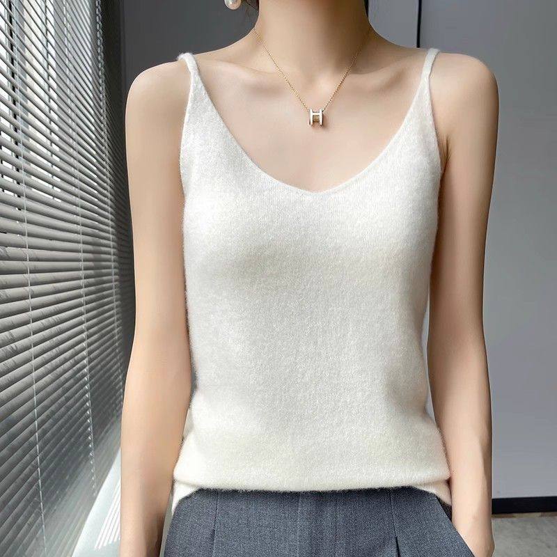 蕾丝性感粉底液吊带小背心女遮肚带胸垫美背外穿内搭上衣白色内衣