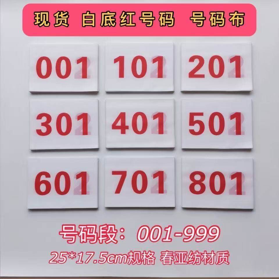 1000田径马拉松号码 运动会号码 001 现货白底红号码 布数字彩色 布