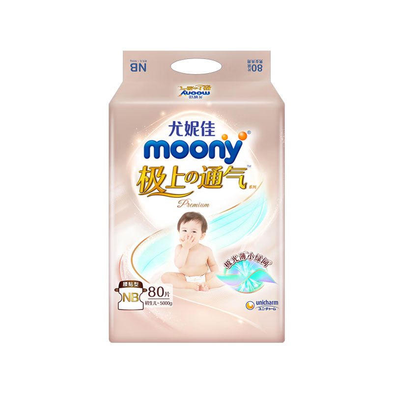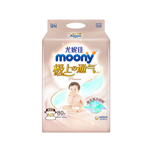 极上通气超薄纸尿裤 尤妮佳Moony 婴儿尿不湿柔软拉拉裤 自营