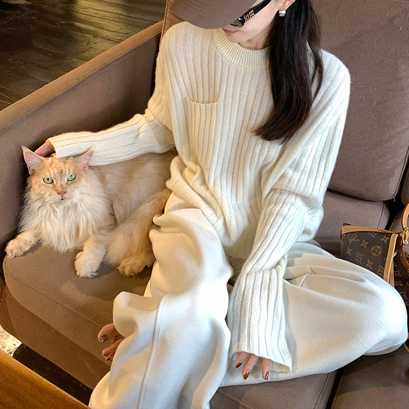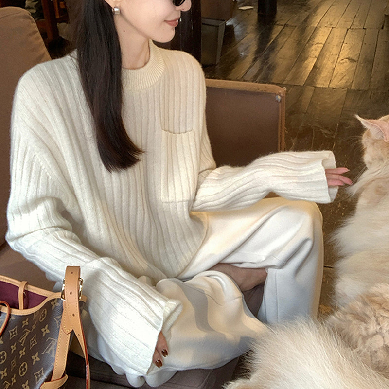 高级感上衣宽松打底针织衫 圆领100%纯山羊绒衫 女高端毛衣秋冬新款