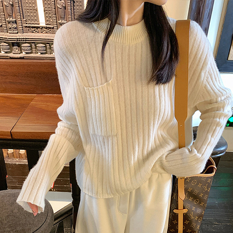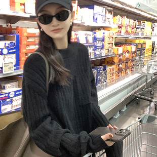 针织打底衫 品牌高级感羊毛衫 女半高领宽松毛衣秋冬加厚羊绒长袖