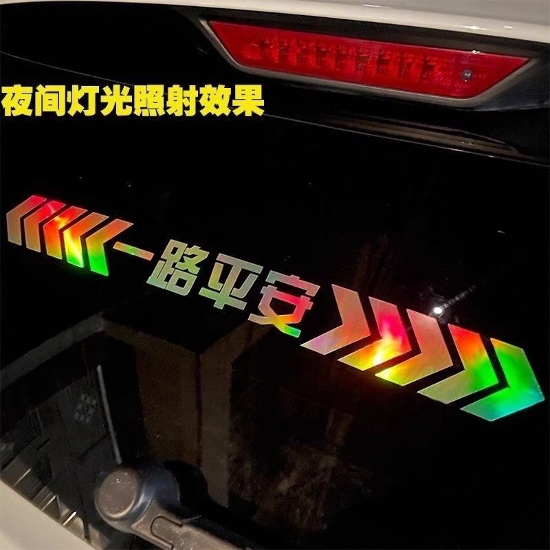 保持车距汽车贴纸七彩镭射夜光警示贴尾部防追尾杠划痕遮挡反光贴