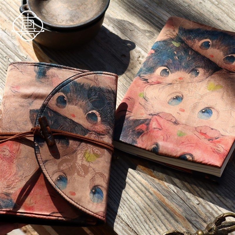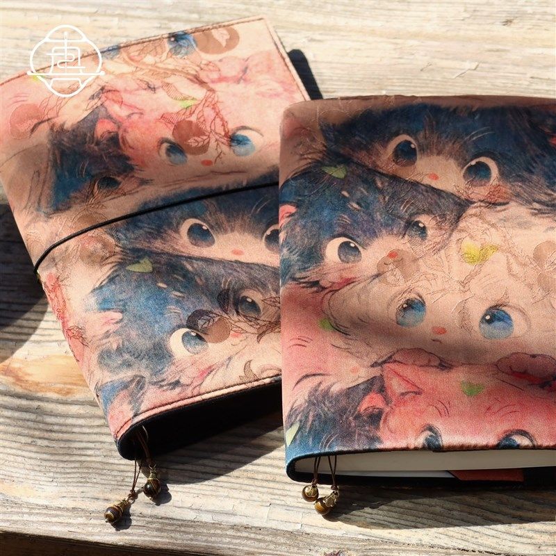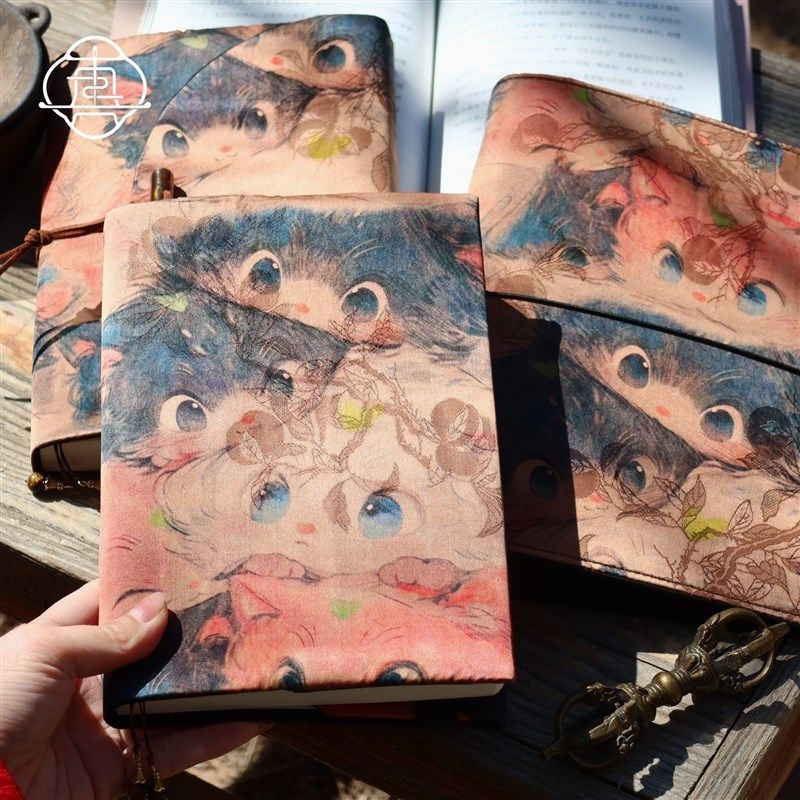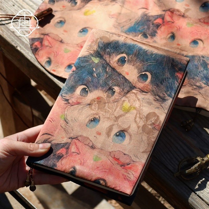 真我 非遗桑蚕丝手账本手工布书衣日记本笔记本a5a6 叠猫猫香云纱
