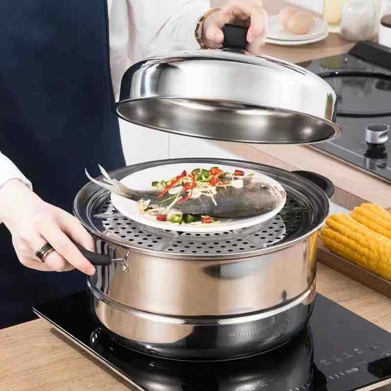 极速厂促不锈钢蒸锅三层双2层y加厚蒸笼汤锅大号蒸锅电磁炉瓦斯锅