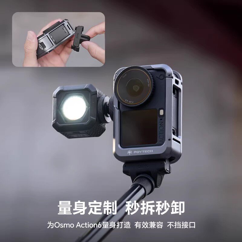 PGYTECH适用于大疆Action6兔笼蒲公英手柄金属边框超轻兔笼运动