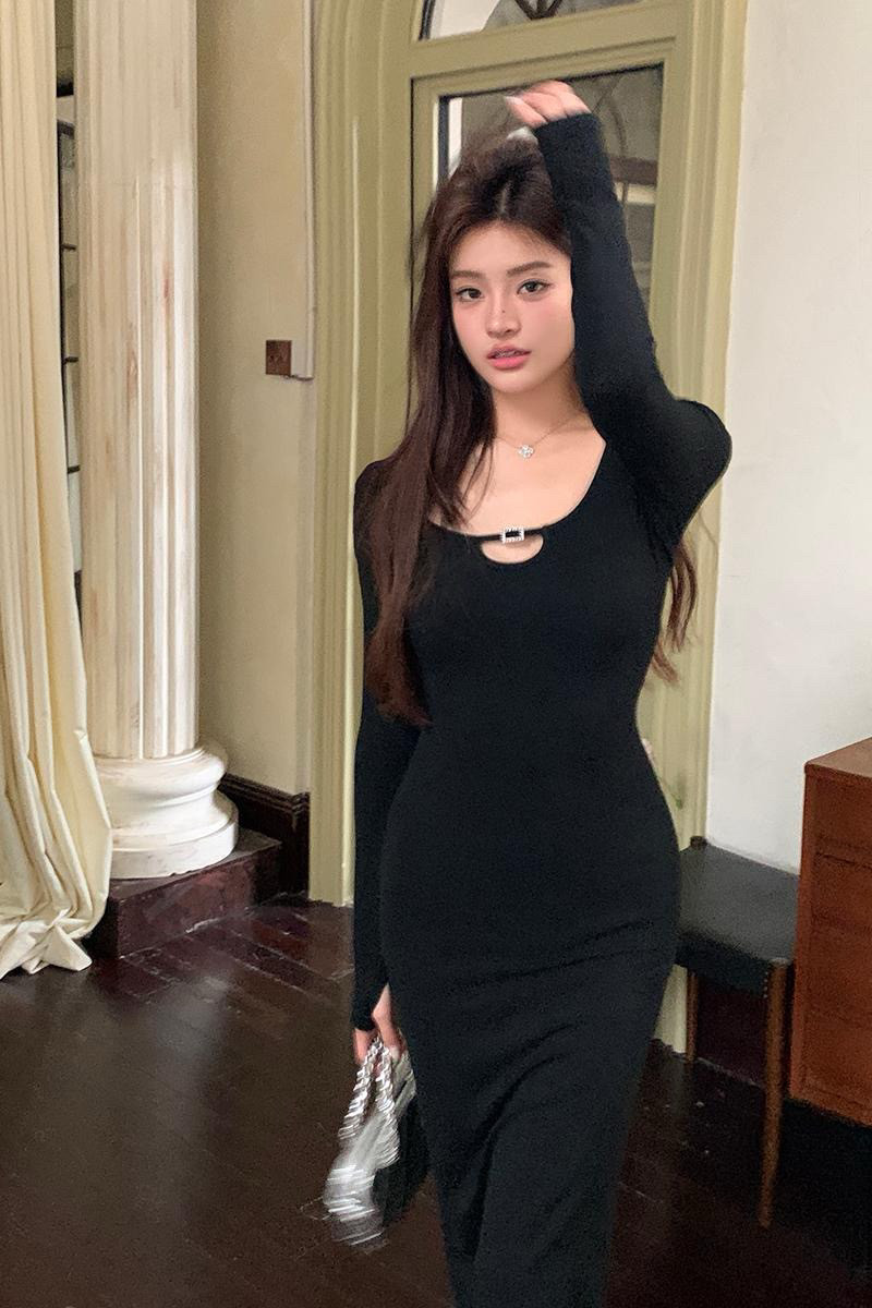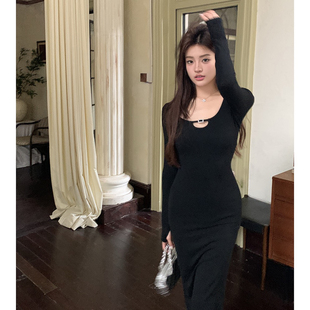 方领镂空连衣裙女修身 韩版 内搭性感紧身包臀裙短裙子 新款 2025春装