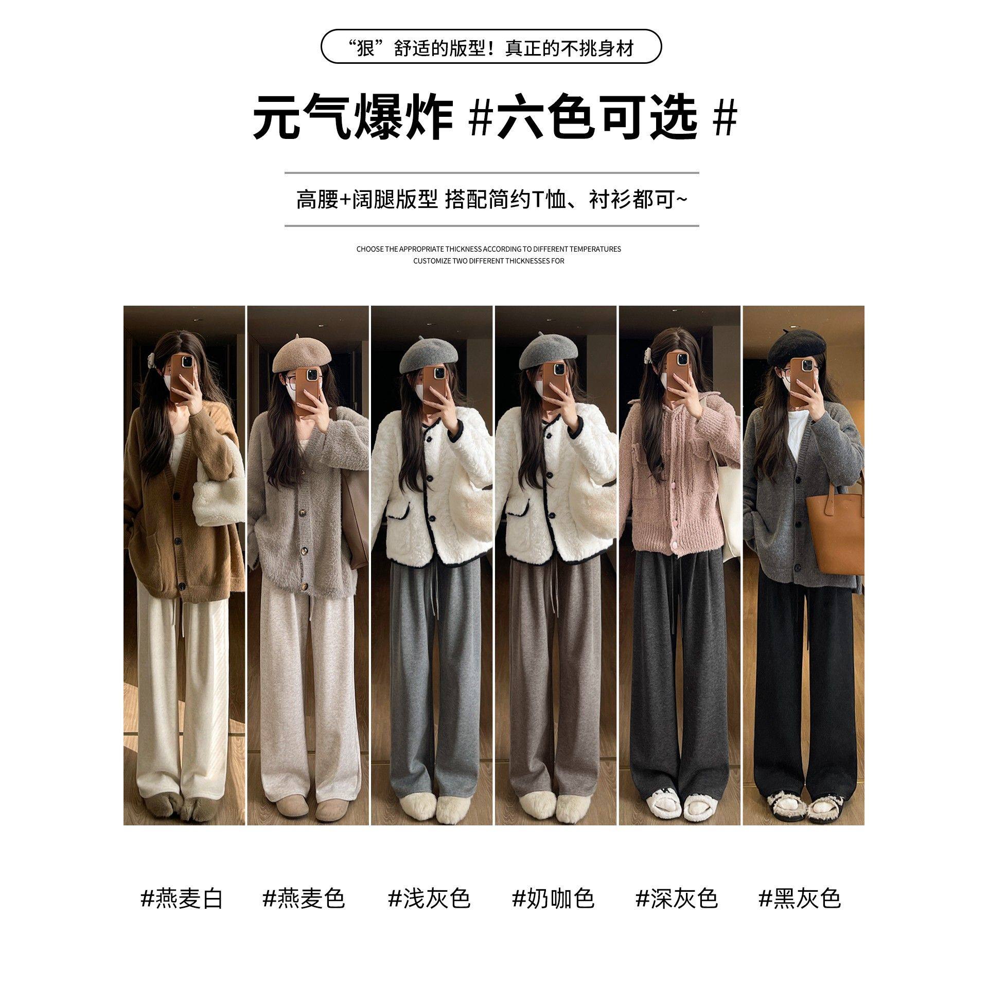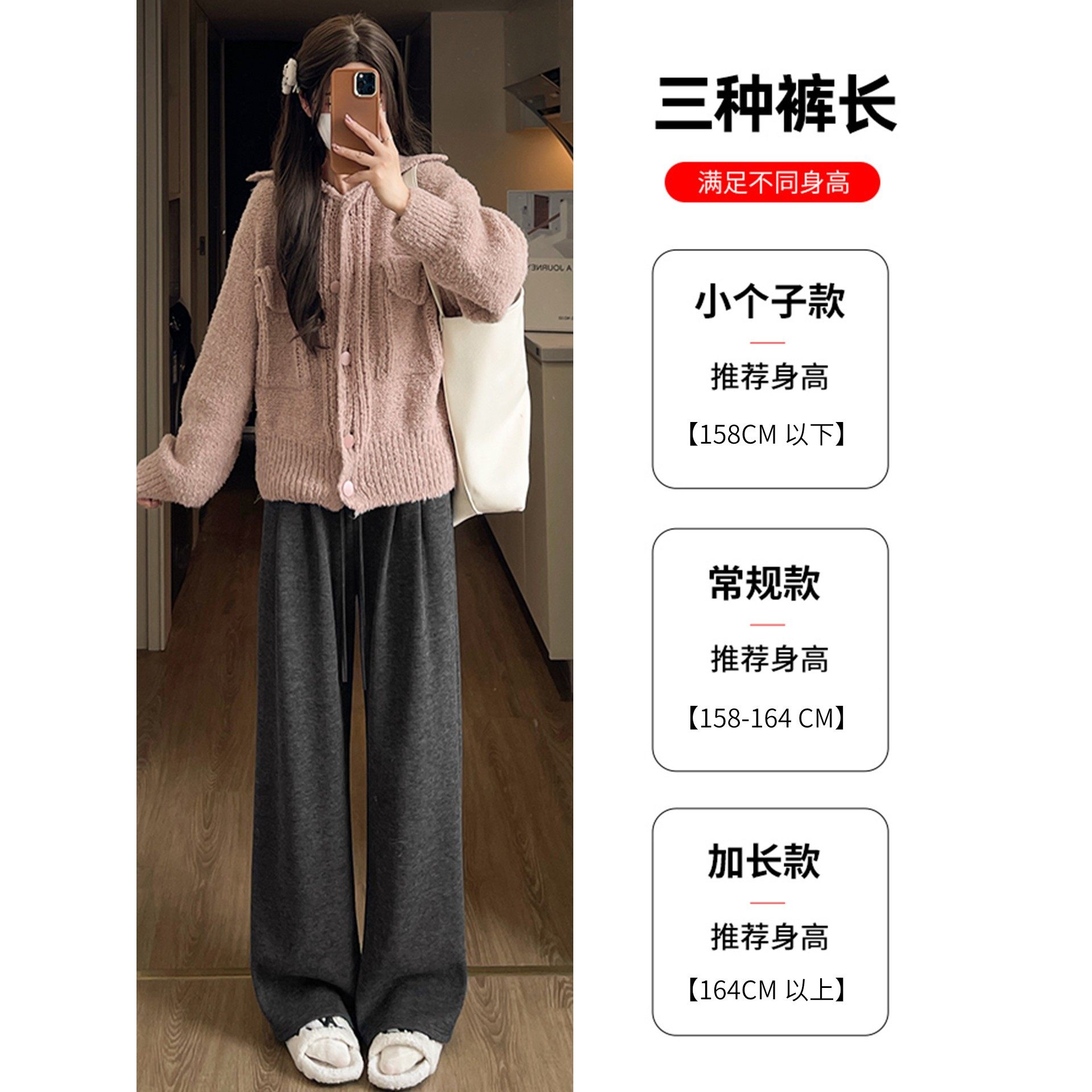 小个子休闲加绒直筒裤 高腰垂感阔腿裤 女秋冬2025新款 深灰色糯米裤