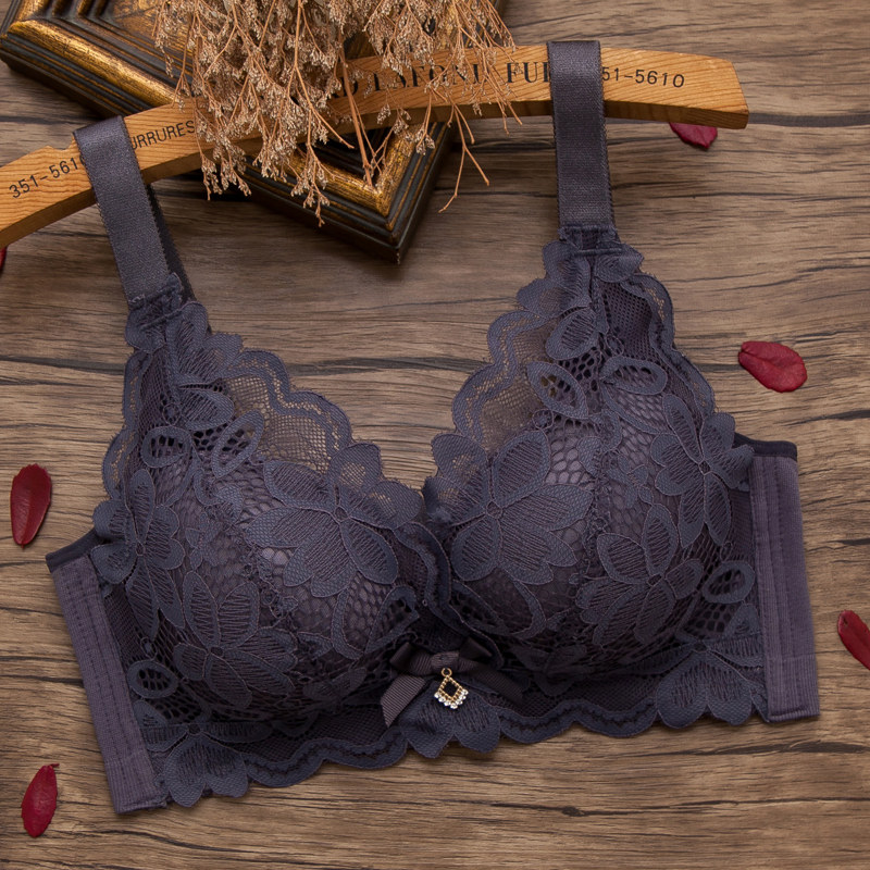2020小胸聚拢内衣上托无钢圈文胸收副乳加厚胸罩女士防下垂蕾丝冬