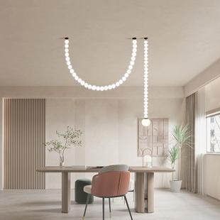 卧室床头吊灯轻奢极简2025新款 触摸可升降伸缩客厅玄关长条吊线灯