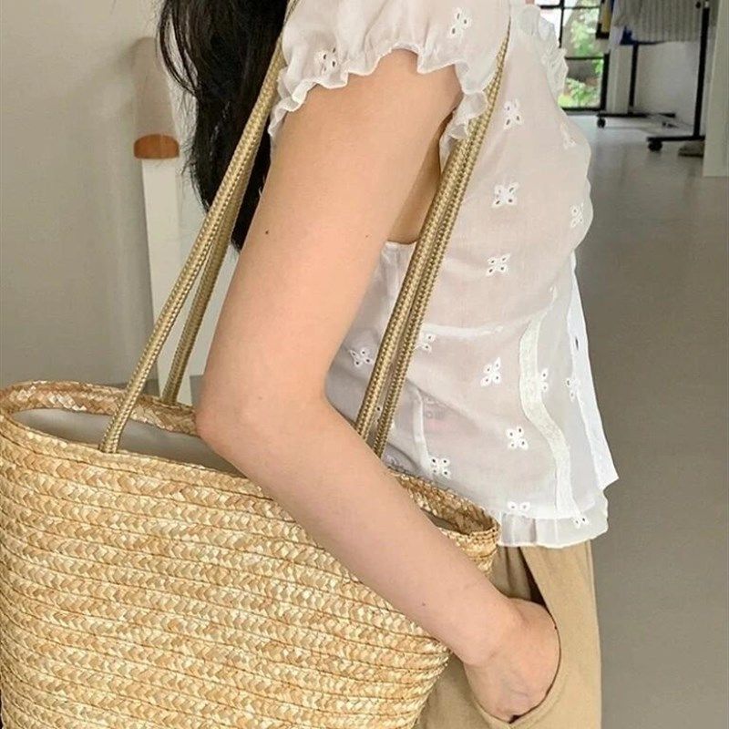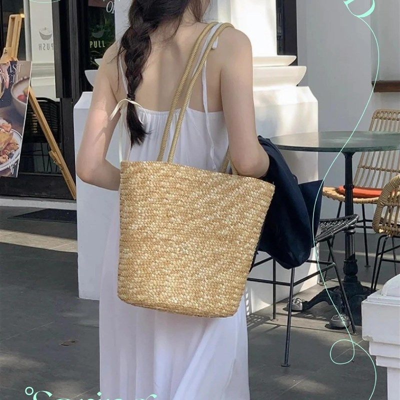韩系网红海边度假沙滩草编水桶包田园风大容量手工编织草包单肩包