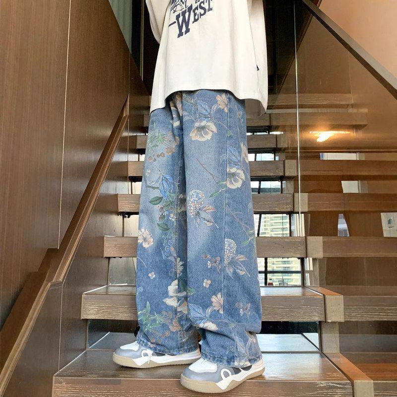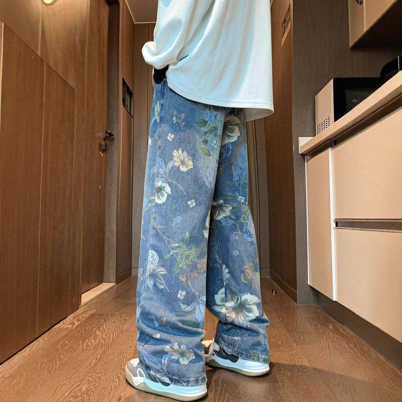 高街弯刀裤 美式 25夏季 新款 复古潮流色 森马牛仔裤 长裤 男宽松直筒裤