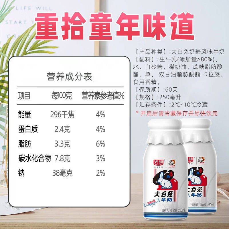 光明风味牛奶奶糖乳饮品饮料童年味道大白兔牛奶250ml瓶装