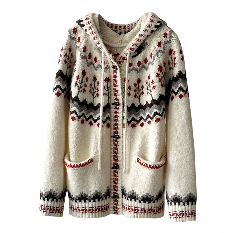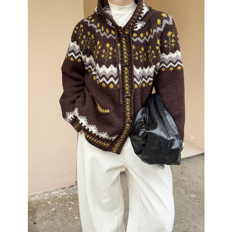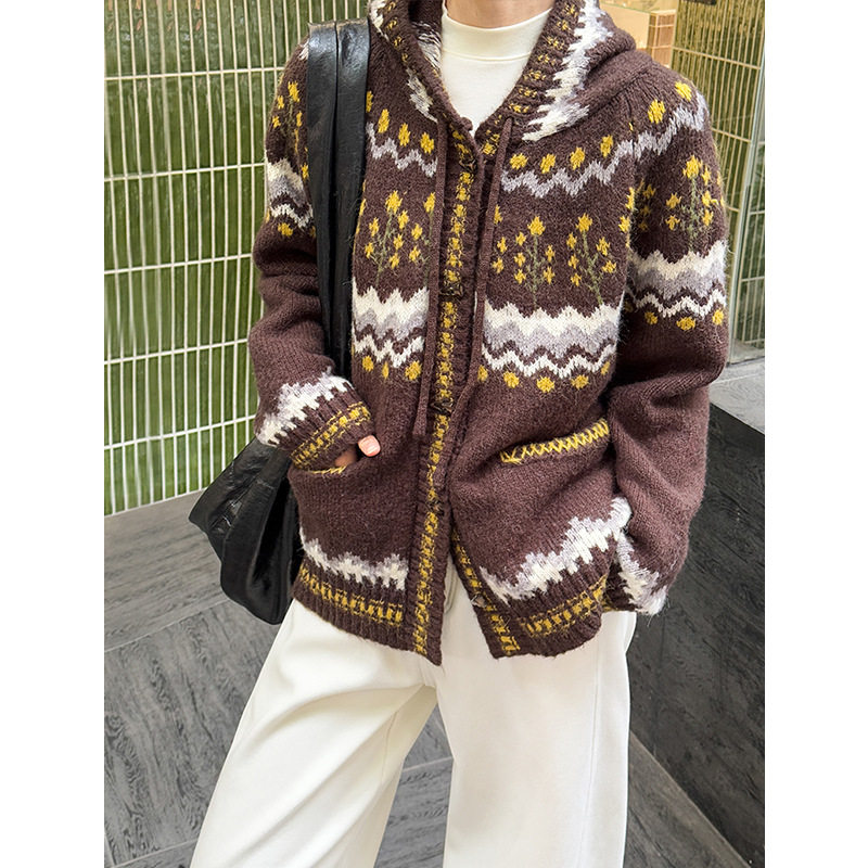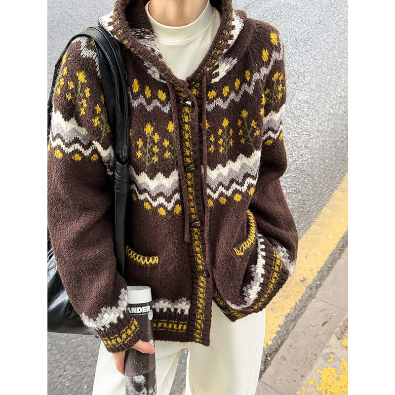 橘芷费尔岛针织连帽开衫 外套1921 圣诞慵懒风毛衣女秋冬加厚针织衫