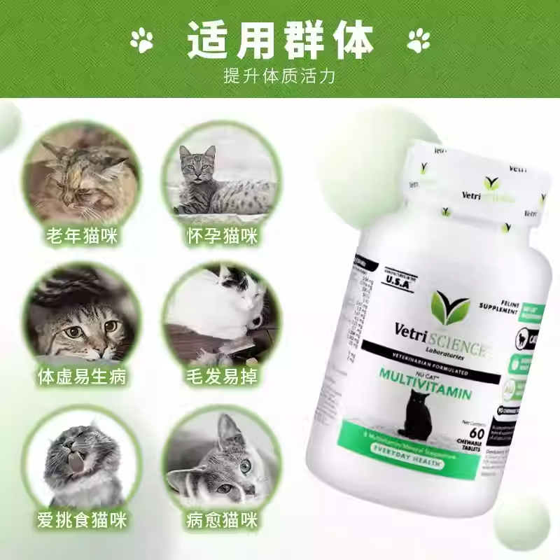 60粒 VetriScience 猫用 复合维生素 瓶 宠大师