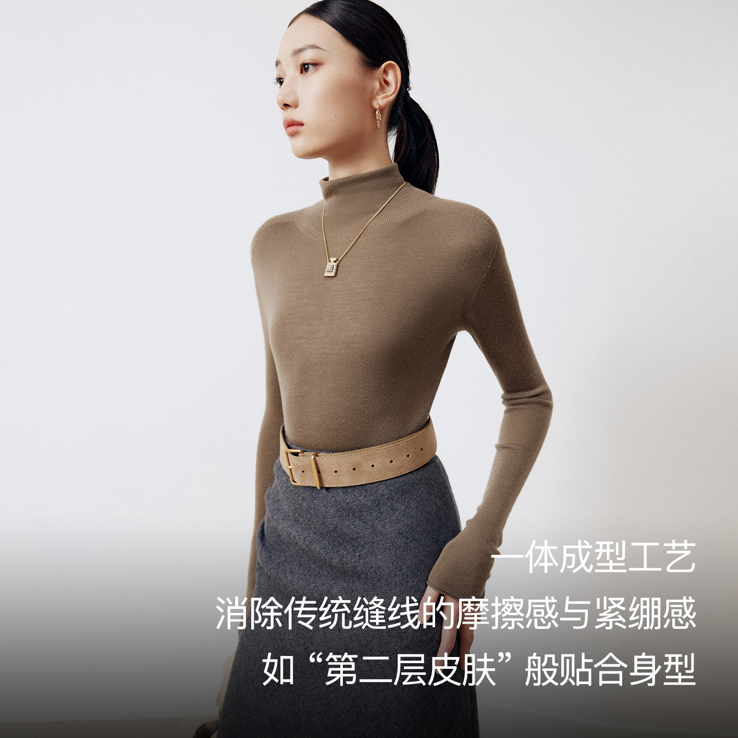 秋冬纯色简约内搭针织衫 羊绒衫 毛衣女 半高领长袖 鄂尔多斯1980